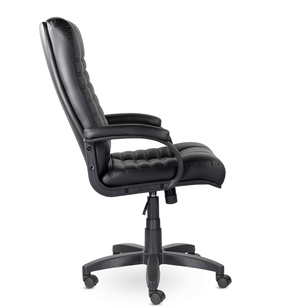Удобное кресло руководителя с необычным дизайном. Широкая спинка имеет множество горизонтальных прострочек, пластиковые подлокотники с мягкими накладками и ярко выраженный подголовник. Множество вариантов обивки и комплектаций кресла. Максимальная нагрузка до 120 кг.