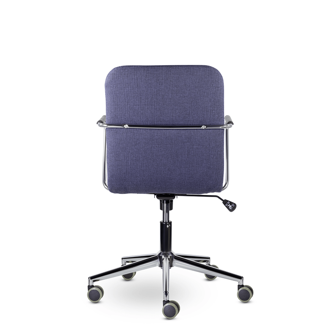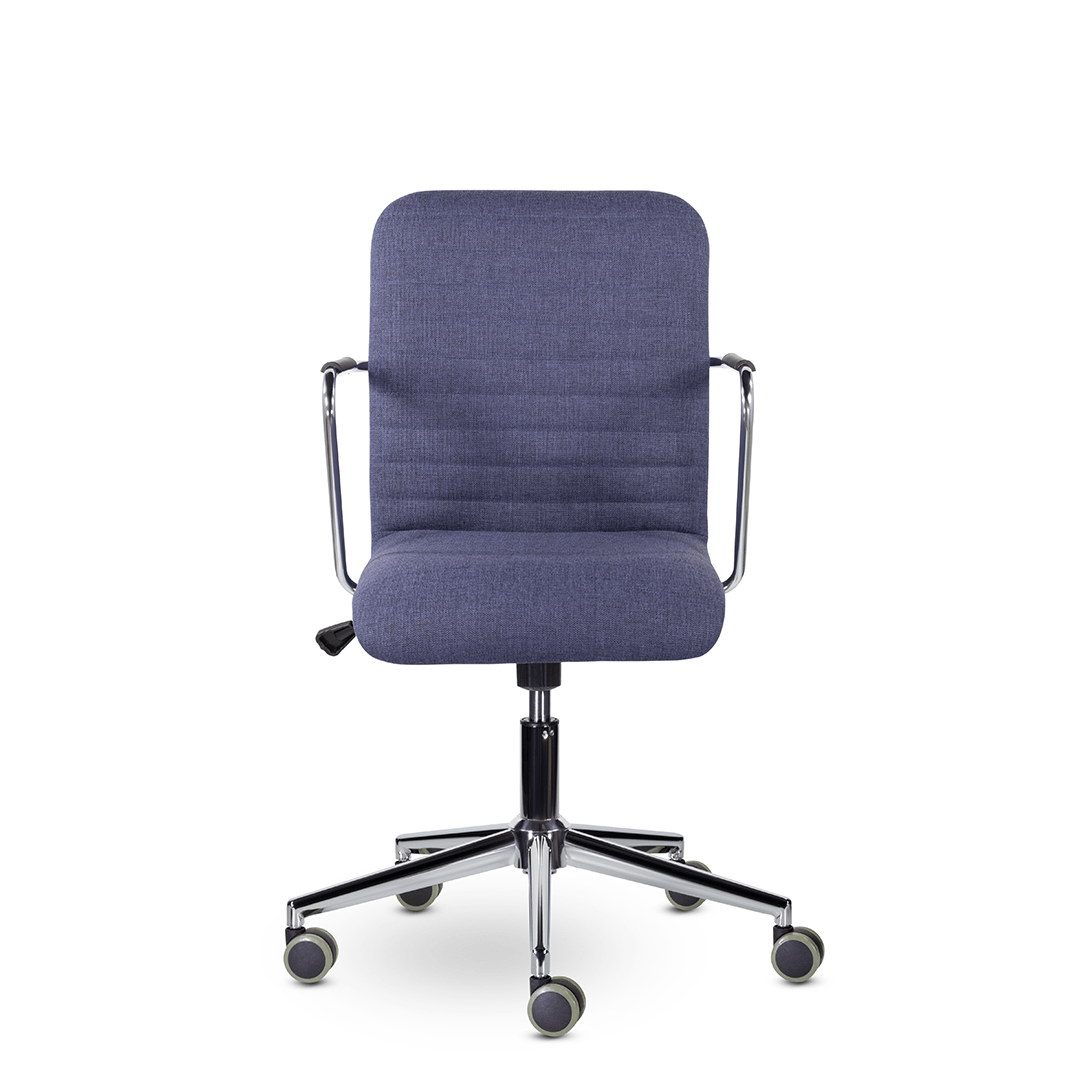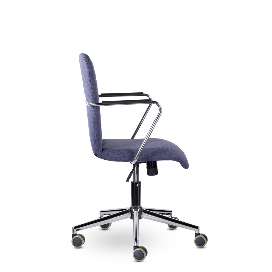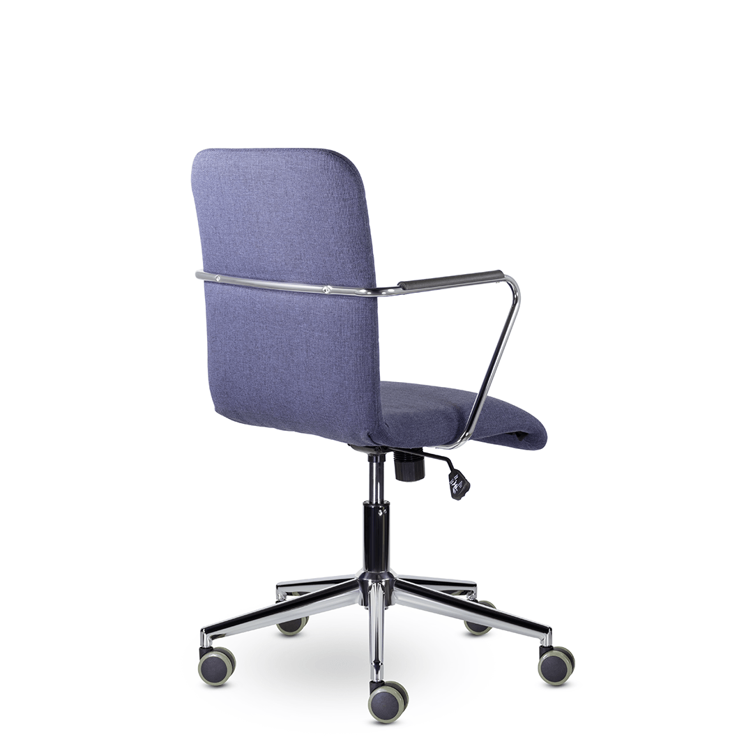 Уникальный каркас из металла и узкие хромированные подлокотники с небольшими пластиковыми накладками придают конструкции легкость и прочность. Горизонтальные строчки на спинке подчеркивают элегантный и современный вид. Хромированная крестовина выдерживает до 120 кг.