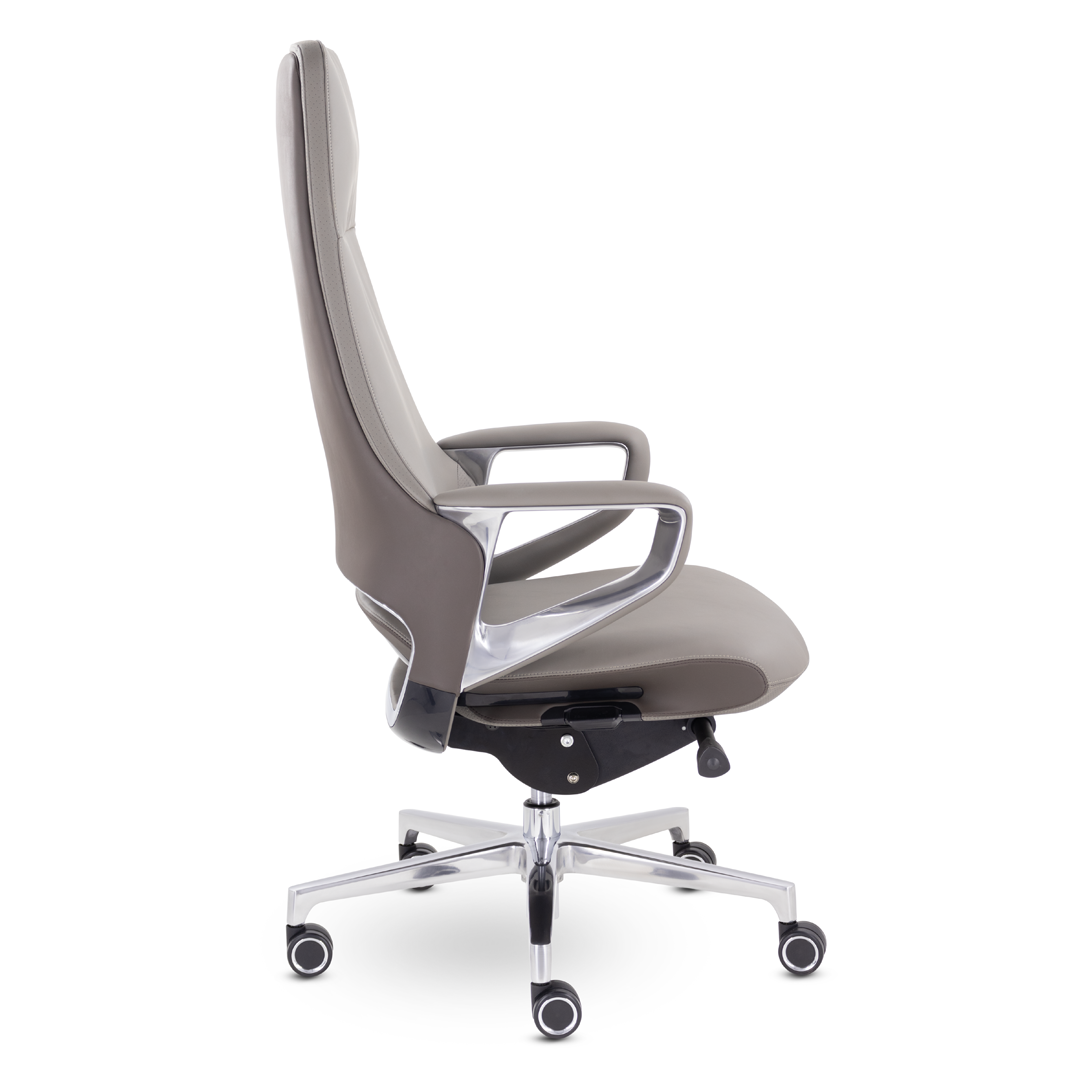 Современное кресло руководителя. Основные особенности кресла - мощные подлокотники с мягкими накладками, которые являются частью каркаса, интегрированный подголовник и механизм кресла. Максимальная нагрузка - 120 кг.