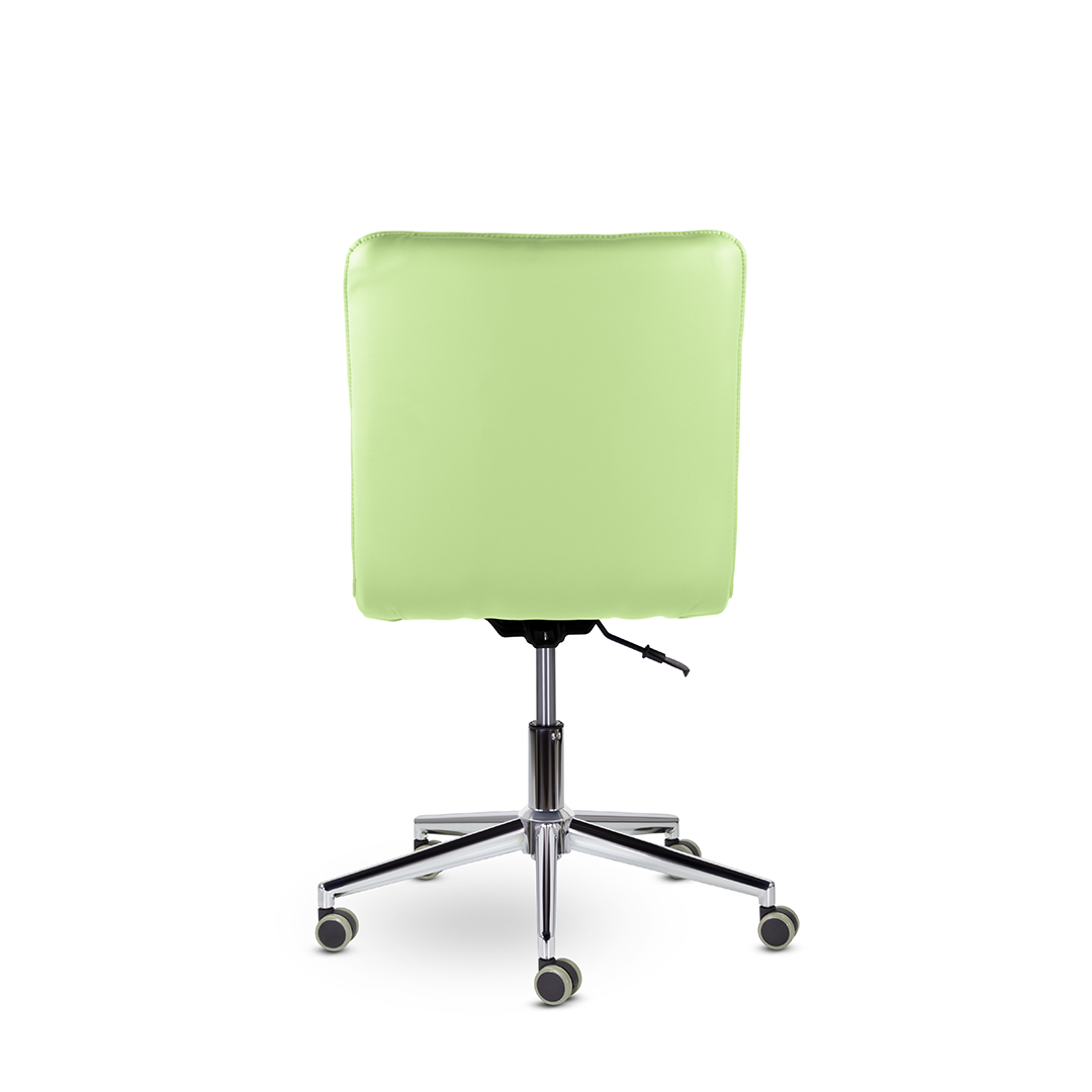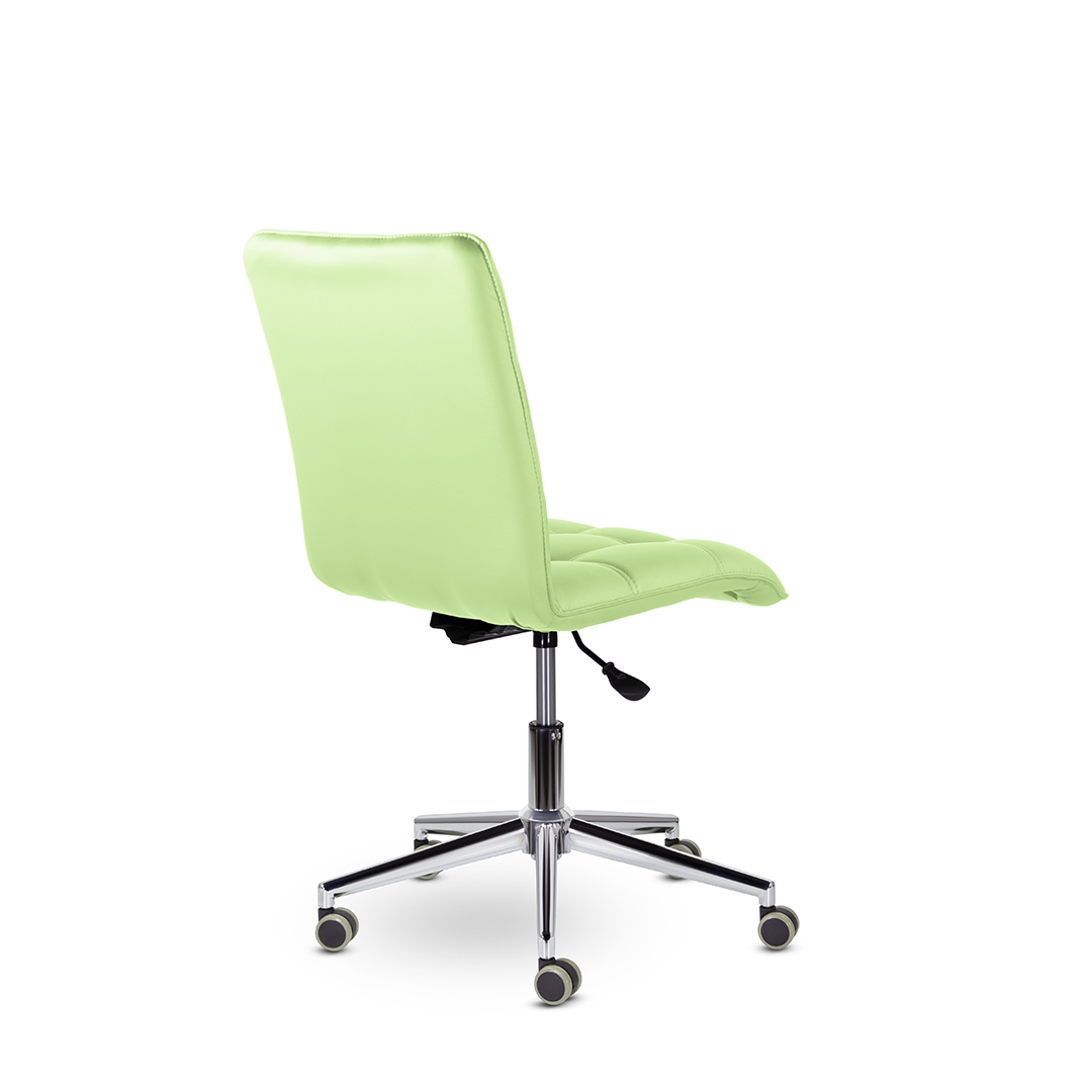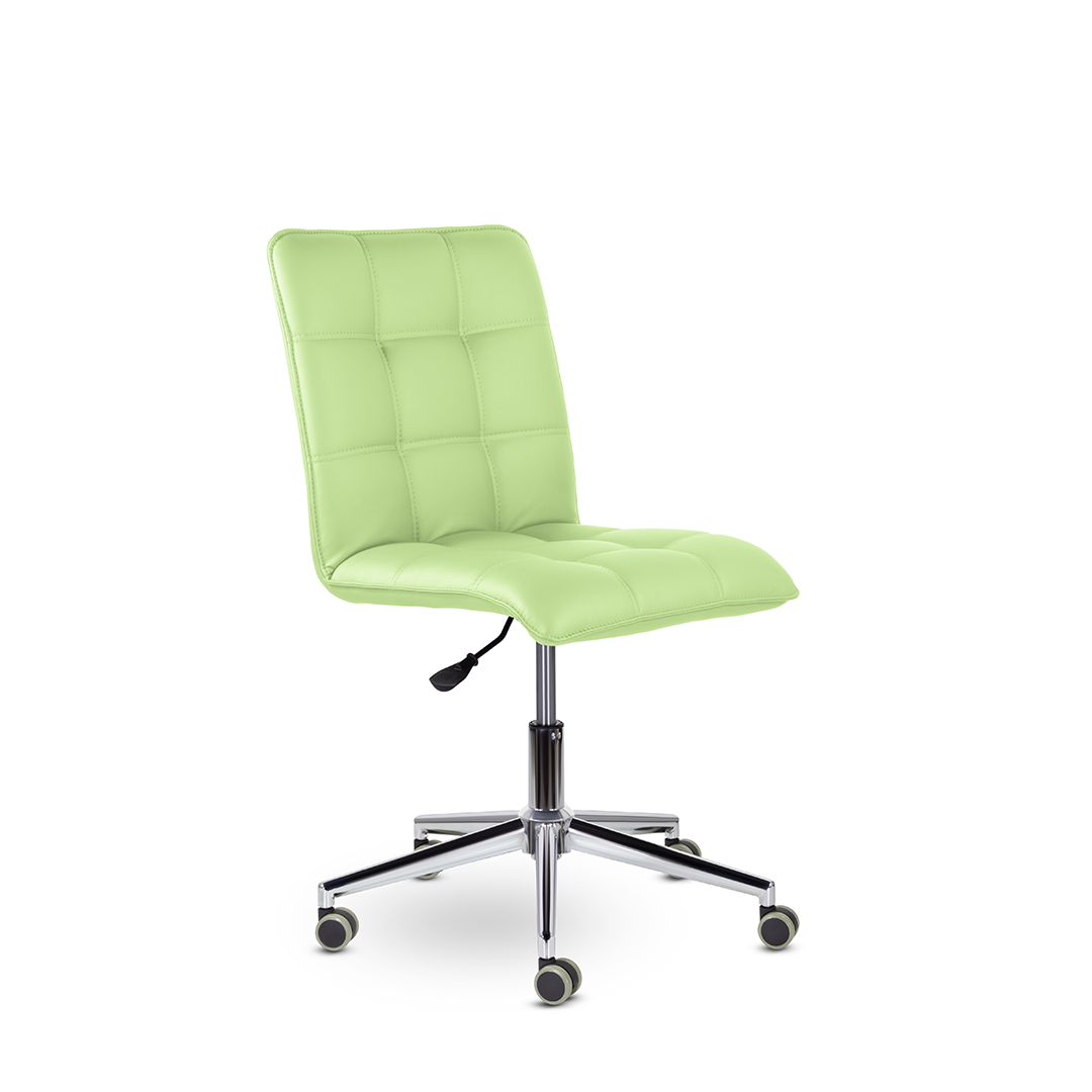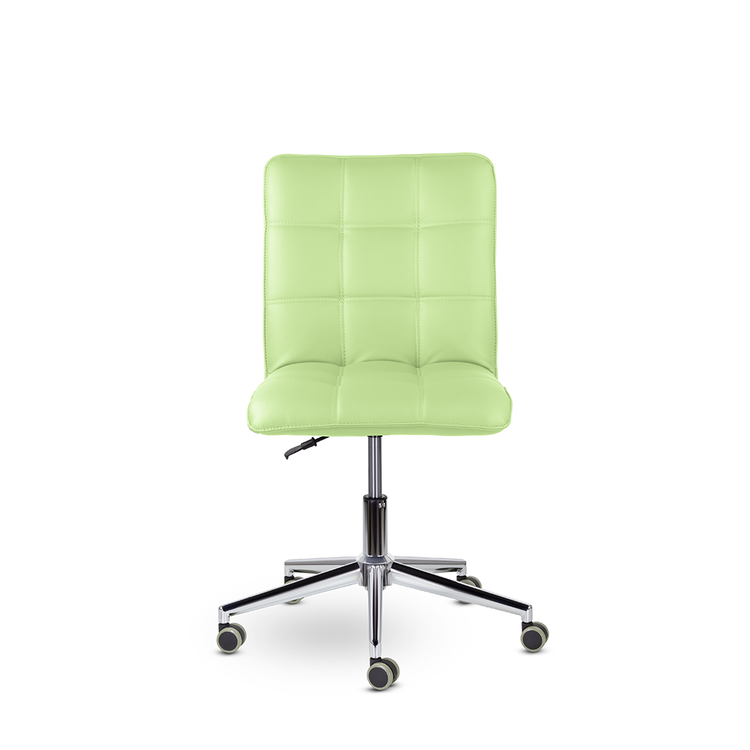 Кресло оператора уникальной формы. Жесткий каркас без подлокотников идеально впишется даже в небольшое пространство, а дизайн хромированной крестовины с узкими лучами придадут креслу современный внешний вид.
