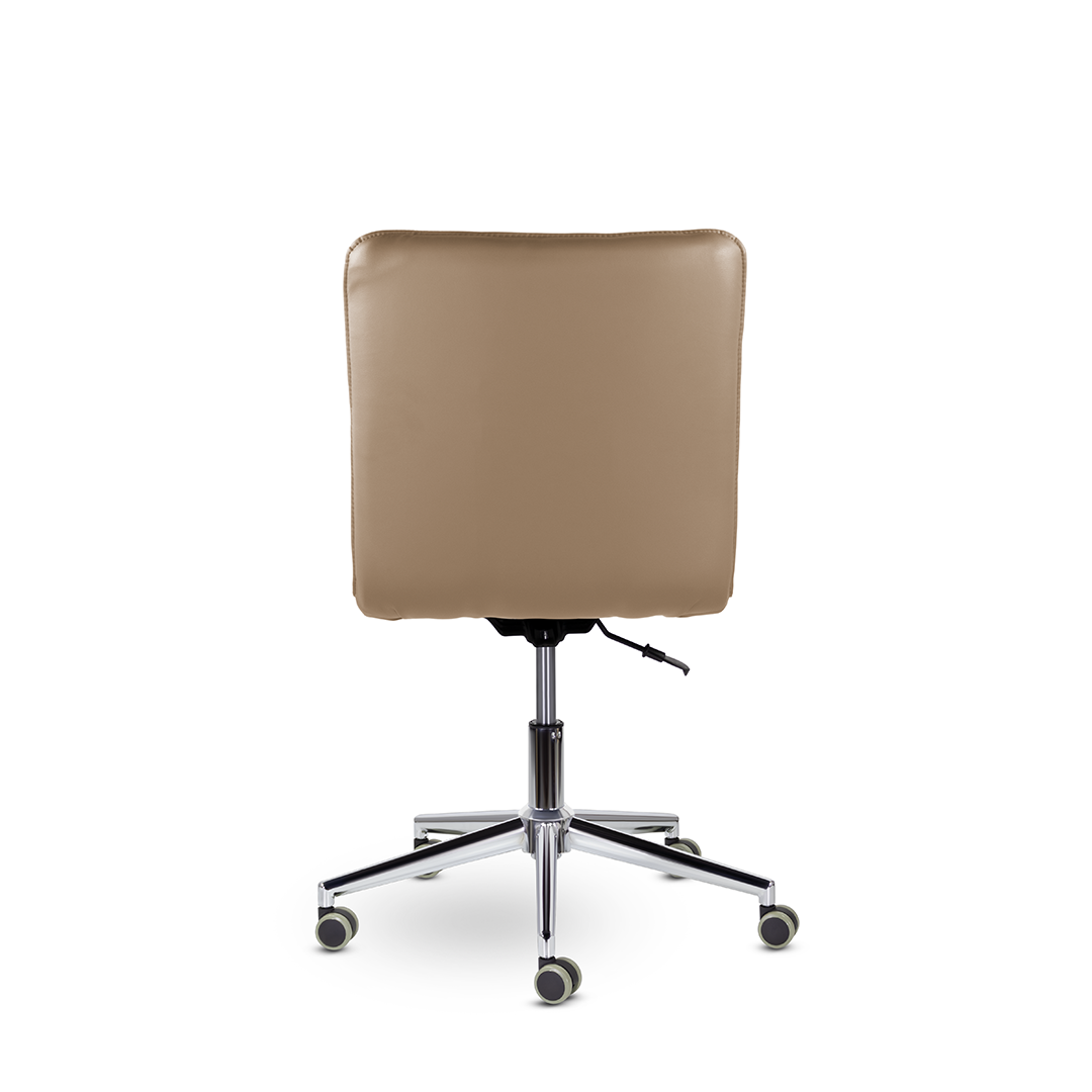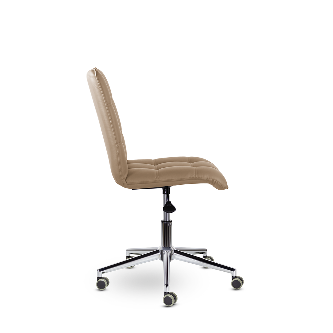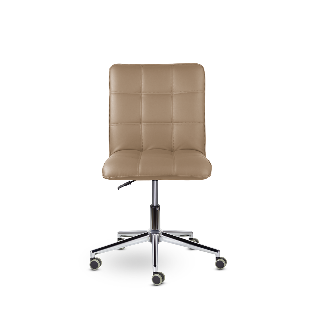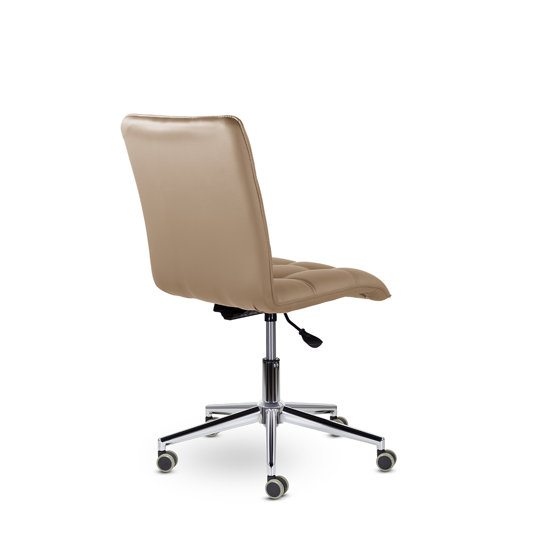 Кресло оператора уникальной формы. Жесткий каркас без подлокотников идеально впишется даже в небольшое пространство, а дизайн хромированной крестовины с узкими лучами придадут креслу современный внешний вид.