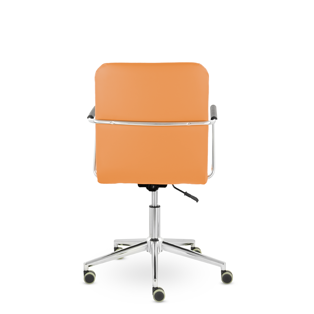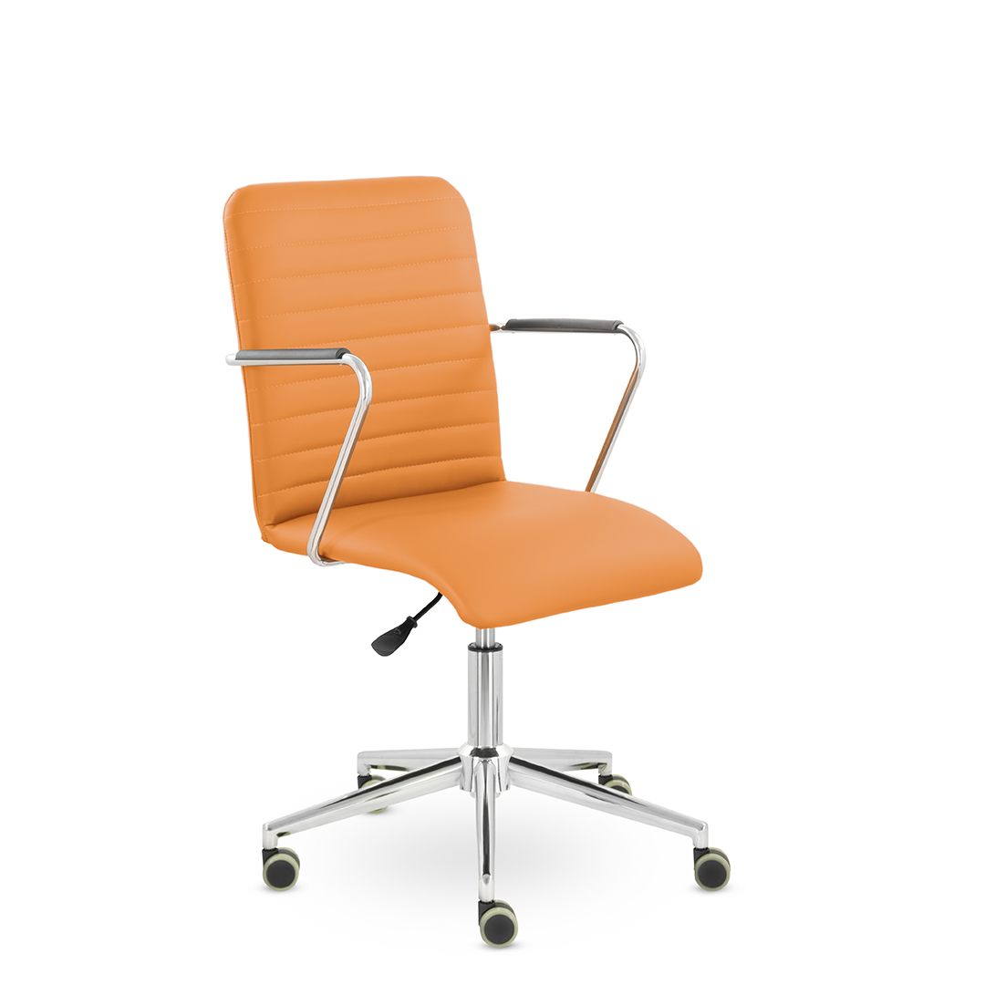 Уникальный каркас из металла и узкие хромированные подлокотники с небольшими пластиковыми накладками придают конструкции легкость и прочность. Горизонтальные строчки на спинке подчеркивают элегантный и современный вид.