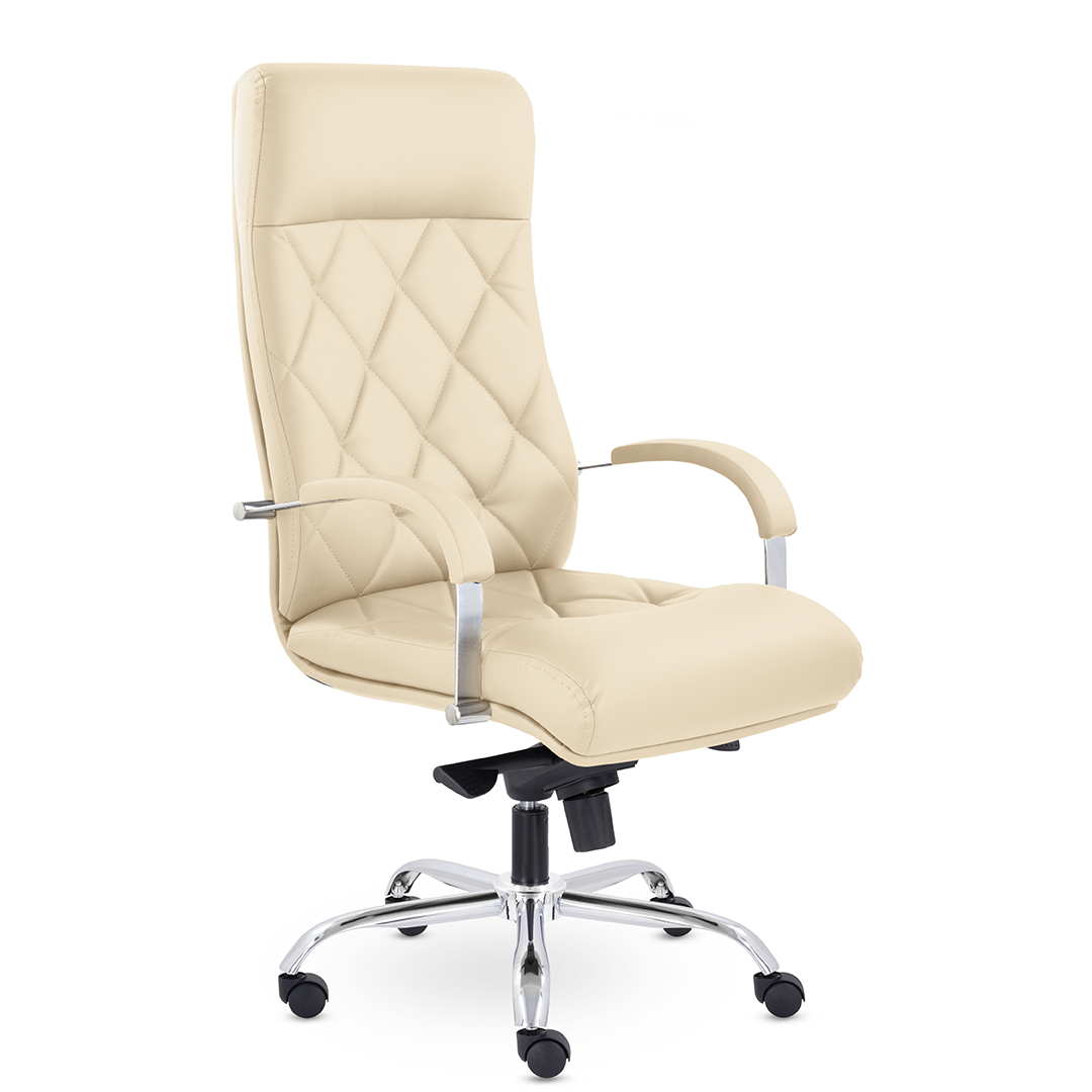 Это кресло восхищает своим изяществом и одновременно строгостью. Кресло имеет креативную прострочку, делящие каркас на небольшие квадраты, а также широкий подголовник. Удобные подлокотники с мягкими накладками и хромированная крестовина. Максимальная нагрузка - 120 кг.