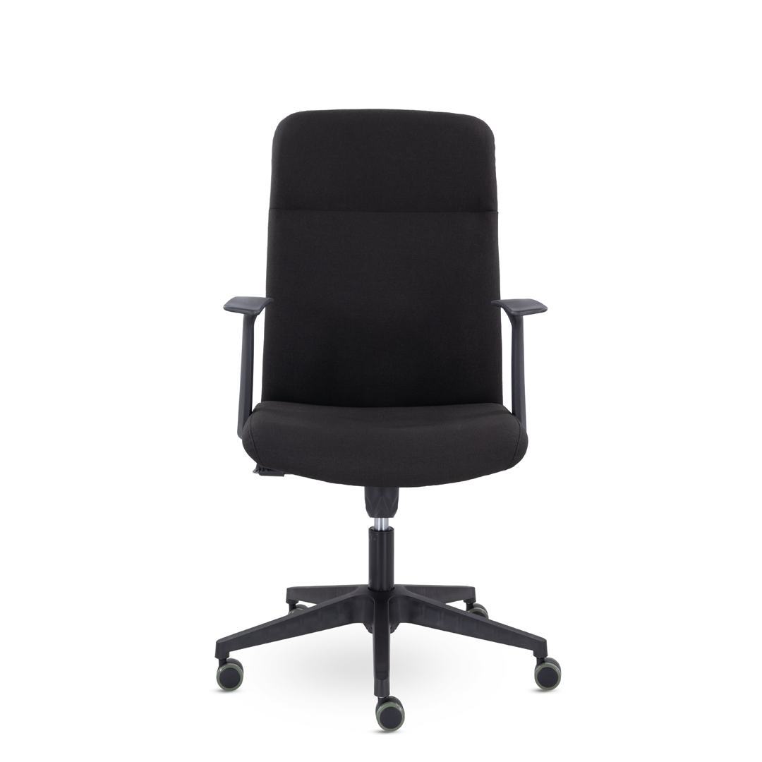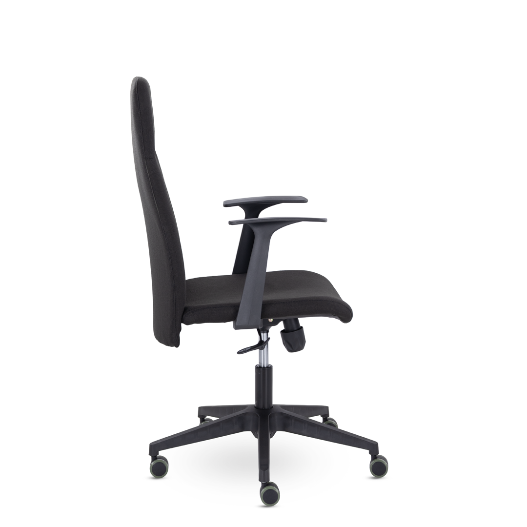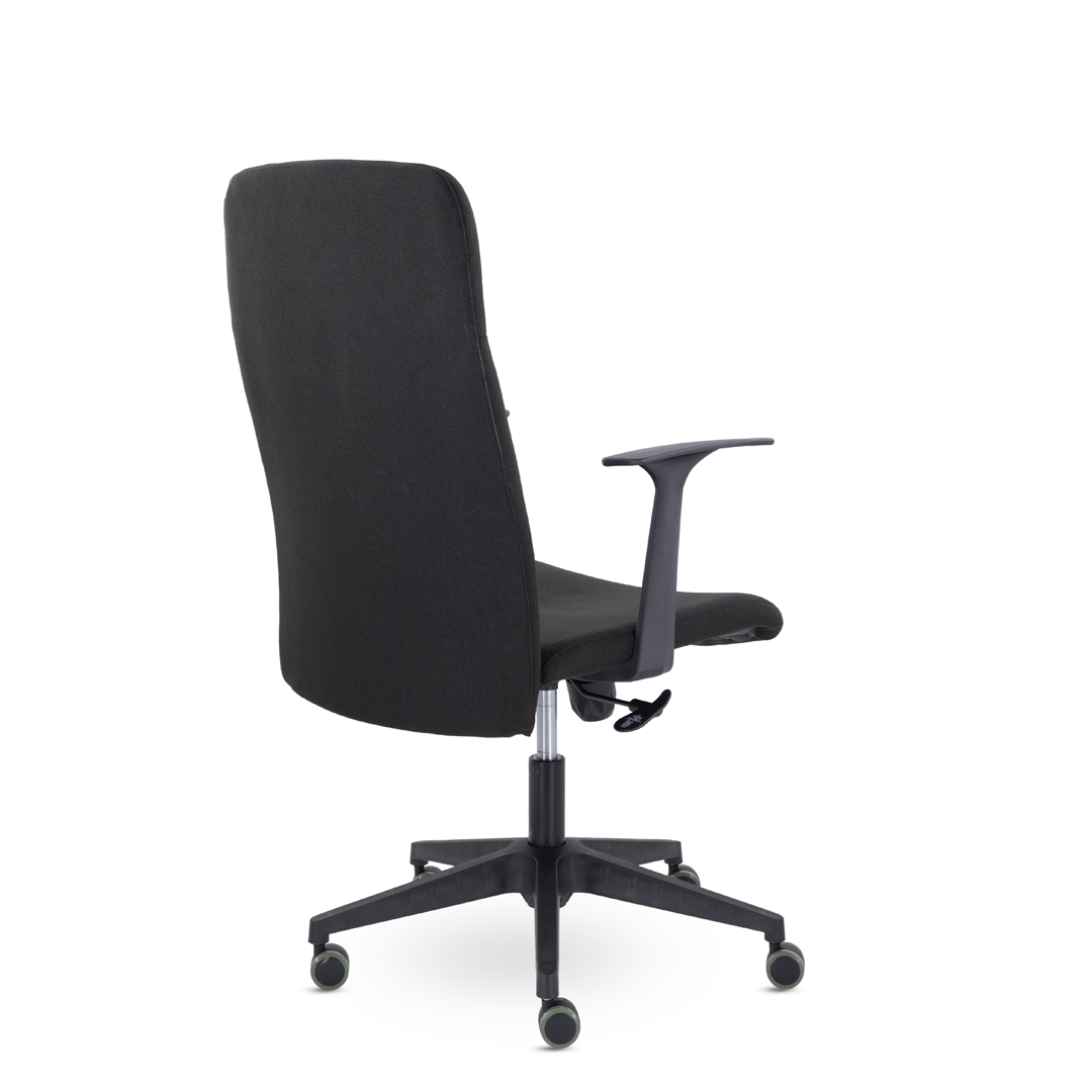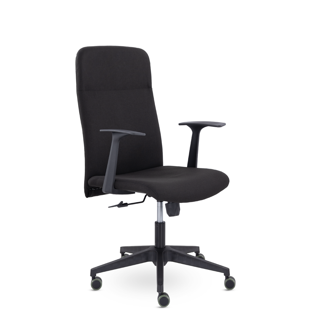 Компактное кресло имеет износостойкую обивку и удобные Т-образные подлокотники. Широкая эргономичная спинка сделают рабочий день максимально комфортным.