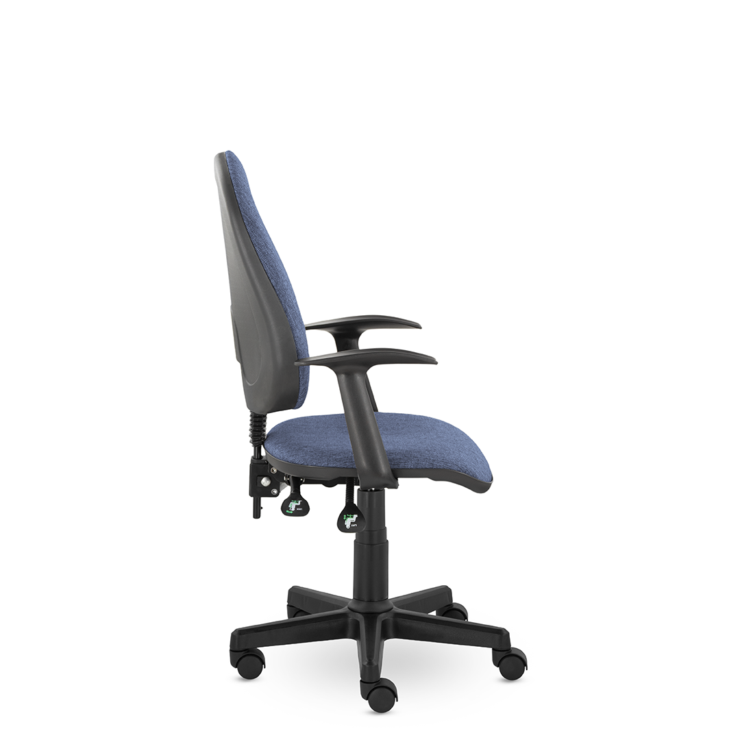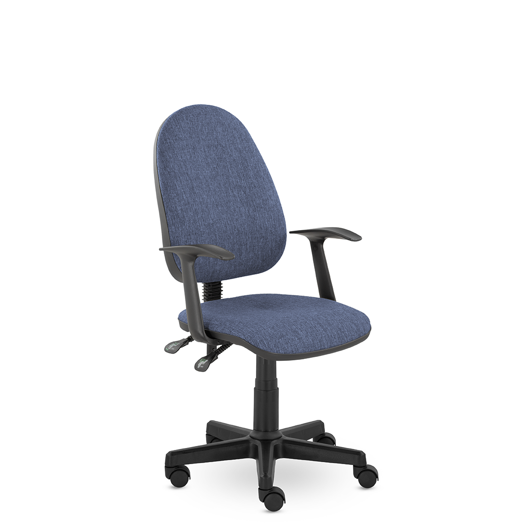 Комфортное кресло оператора имеет увеличенные мягкие подушки на спинке и сиденье, обитые износостойкой тканью. Удобные пластиковые подлокотники Т-образные подлокотники и синхромеханизм "Люкс" с 2-мя рычагами. Один рычаг для регулировки высоты подъема стула, второй рычаг позволяет свободно менять положение тела, обеспечивая постоянный контакт спины пользователя со спинкой кресла, а также фиксирует угол наклона спинки в любом положении.
