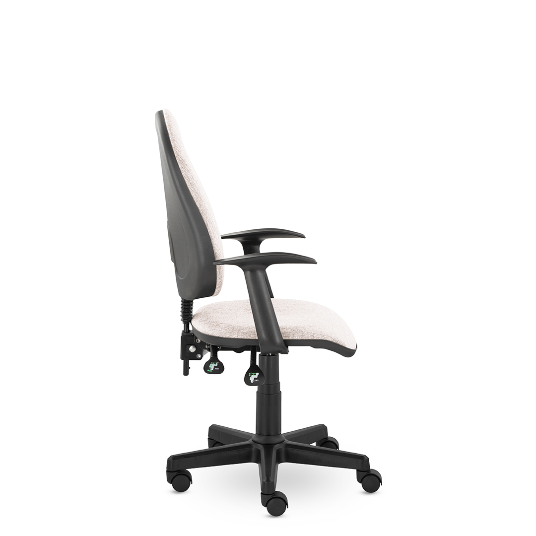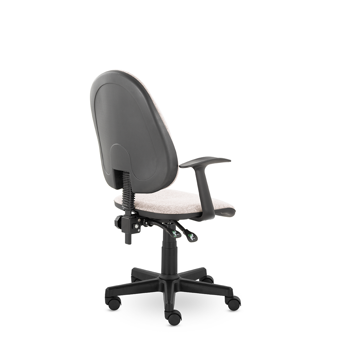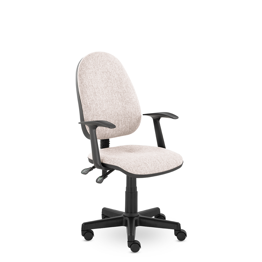 Комфортное кресло оператора имеет увеличенные мягкие подушки на спинке и сиденье, обитые износостойкой тканью. Удобные пластиковые подлокотники Т-образные подлокотники и синхромеханизм "Люкс" с 2-мя рычагами. Один рычаг для регулировки высоты подъема стула, второй рычаг позволяет свободно менять положение тела, обеспечивая постоянный контакт спины пользователя со спинкой кресла, а также фиксирует угол наклона спинки в любом положении.