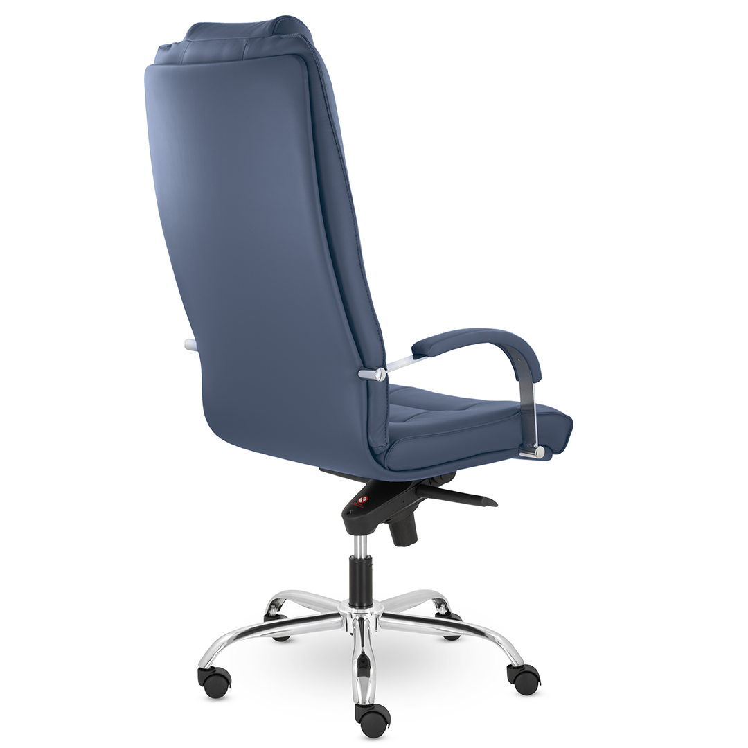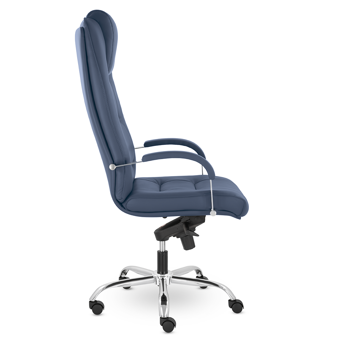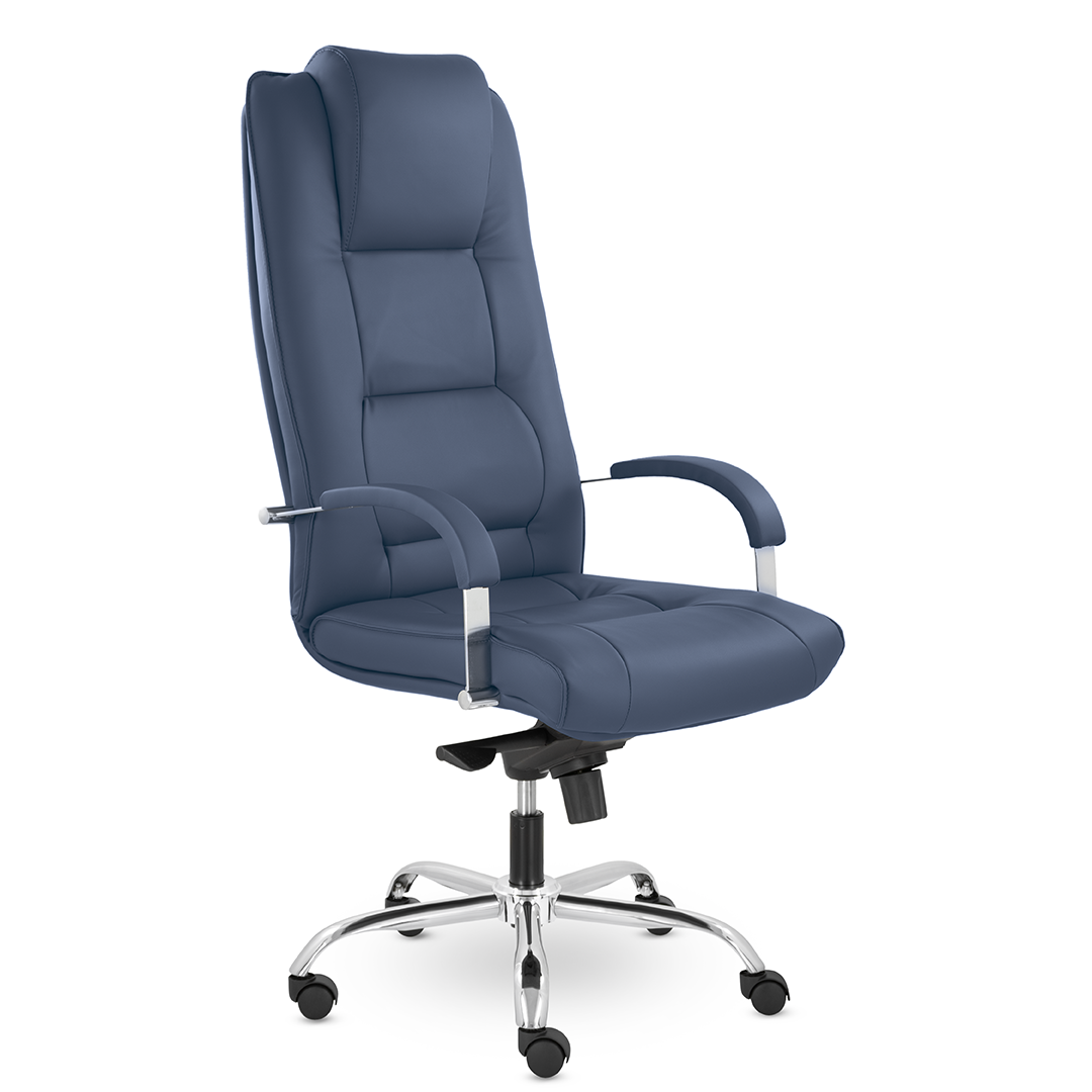 Грациозное кресло руководителя с ярко выраженным мягким подголовником. Спинка и сидение имеют горизонтальные прострочки, делящие их на квадраты. Хромированные подлокотники с мягкими накладками. Кресло стоит на хромированной крестовине, максимальная нагрузка которой 120 кг.