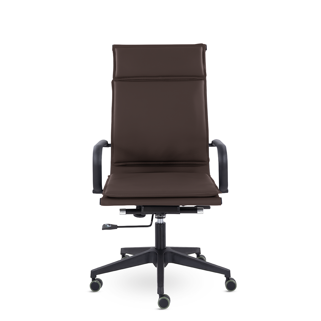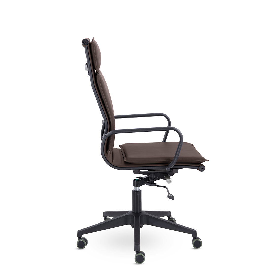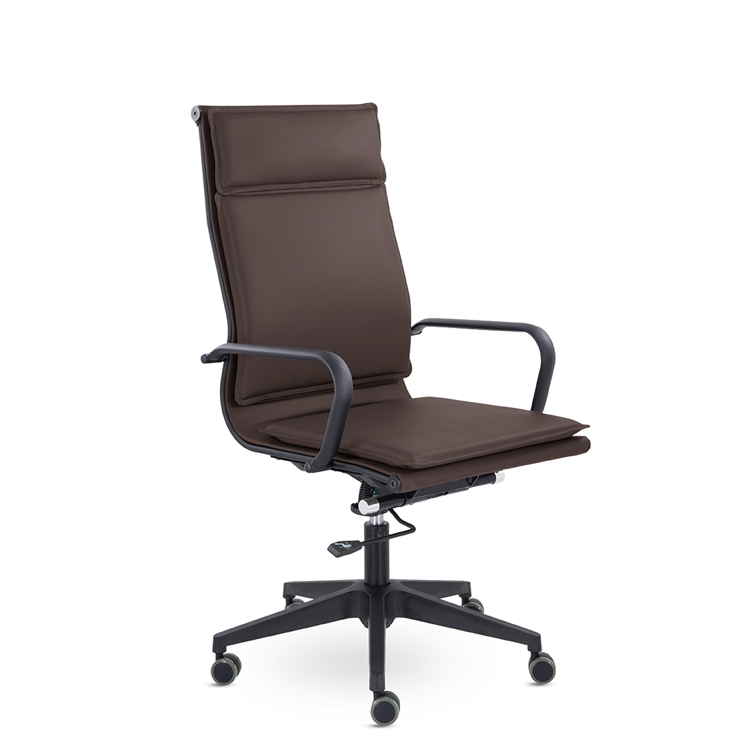 Лучший выбор современного руководителя. Работайте с удовольствием, вдохновляйтесь, принимайте важные решения! Проводить время в этом кресле - одно удовольствие. Ощущение комфорта благодаря мягким элементам подголовника, спинки и сиденья, черный металлический каркас и узкая крестовина задают современный стиль креслу.