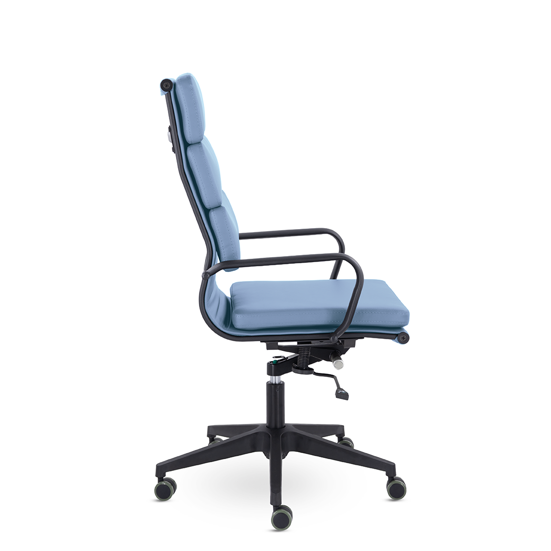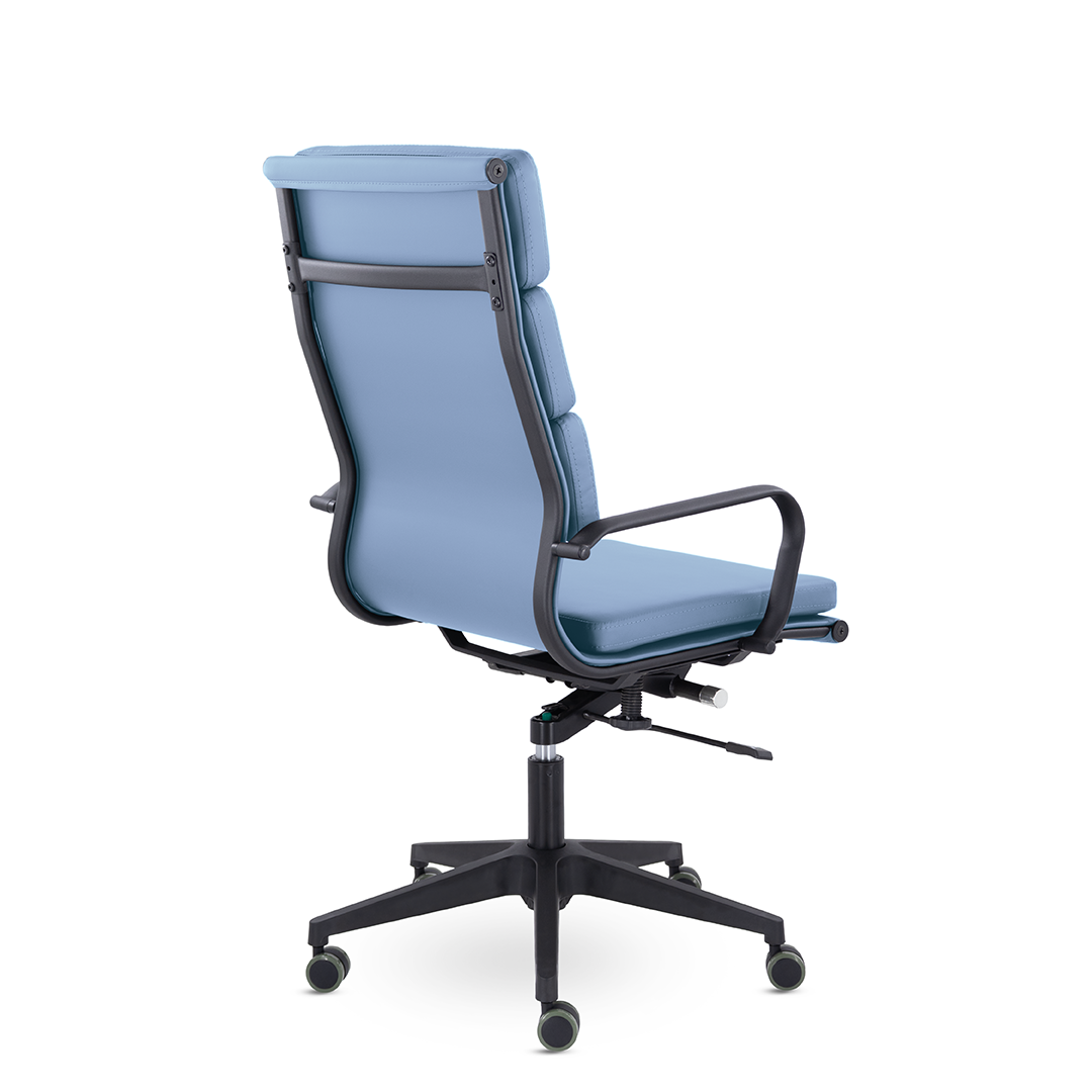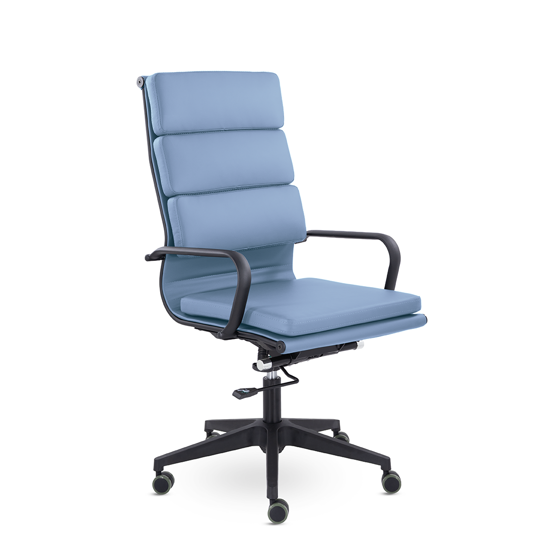 Кресло руководителя в современном металлическом каркасе. Комфорт создается благодаря мягким элементам спинки и сиденья. Черный каркас и узкая крестовина задают современный стиль креслу. Кресло отлично смотрится в строгих и открытых кабинетах.