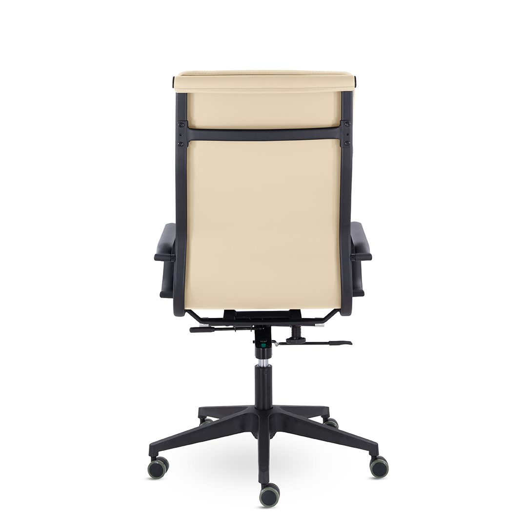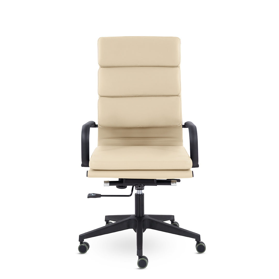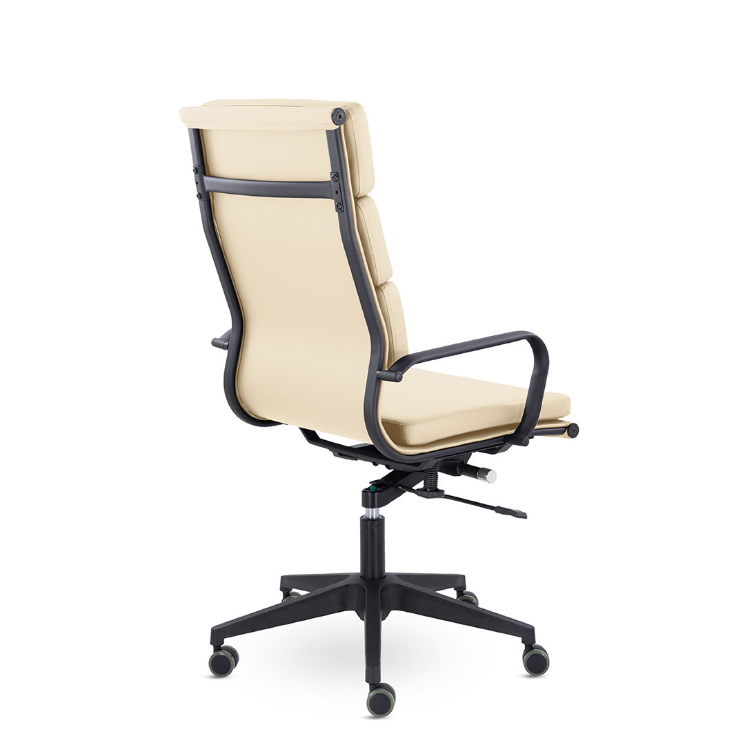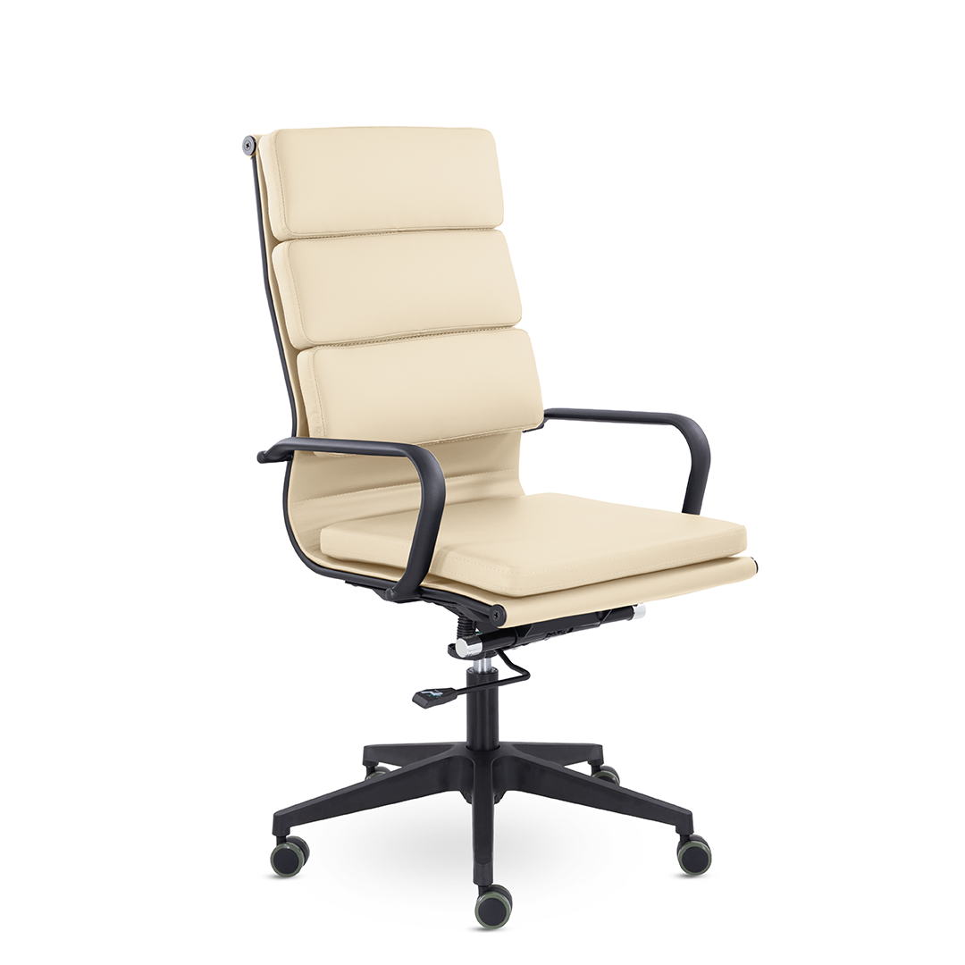 Кресло руководителя в современном металлическом каркасе. Комфорт создается благодаря мягким элементам спинки и сиденья. Черный каркас и узкая крестовина задают современный стиль креслу. Кресло отлично смотрится в строгих и открытых кабинетах.