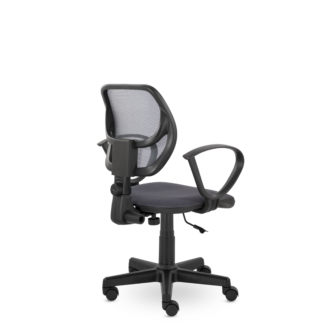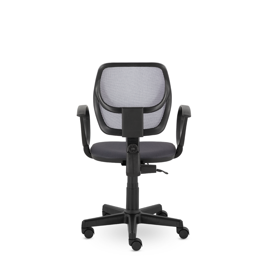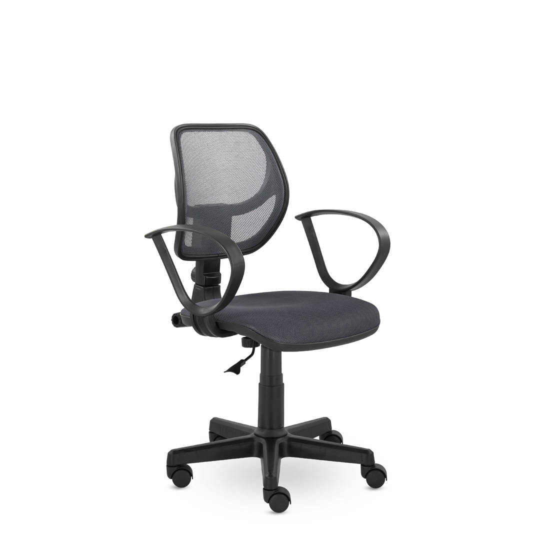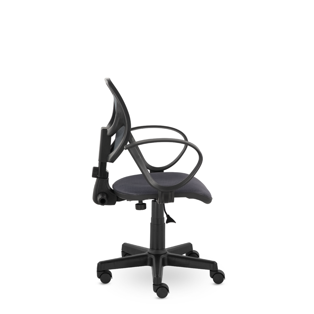 Компактное кресло для дома и офиса. Спинка, обтянутая прочной сеткой, имеет поясничный упор, обладает эффективной воздухопроницаемостью. Возможность регулировать угол наклона спинки и высоту кресла. Удобные подлокотники "Рондо".
