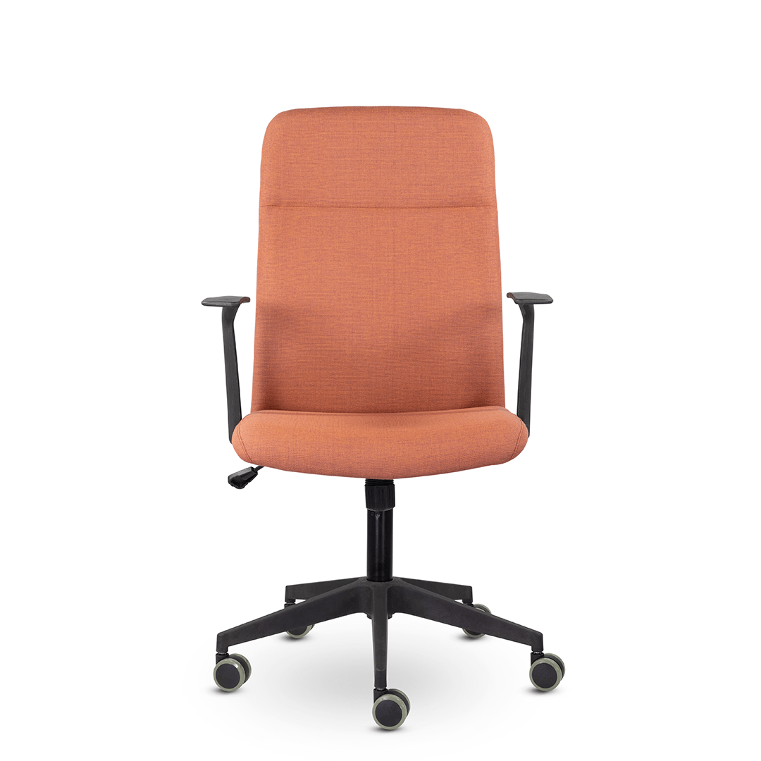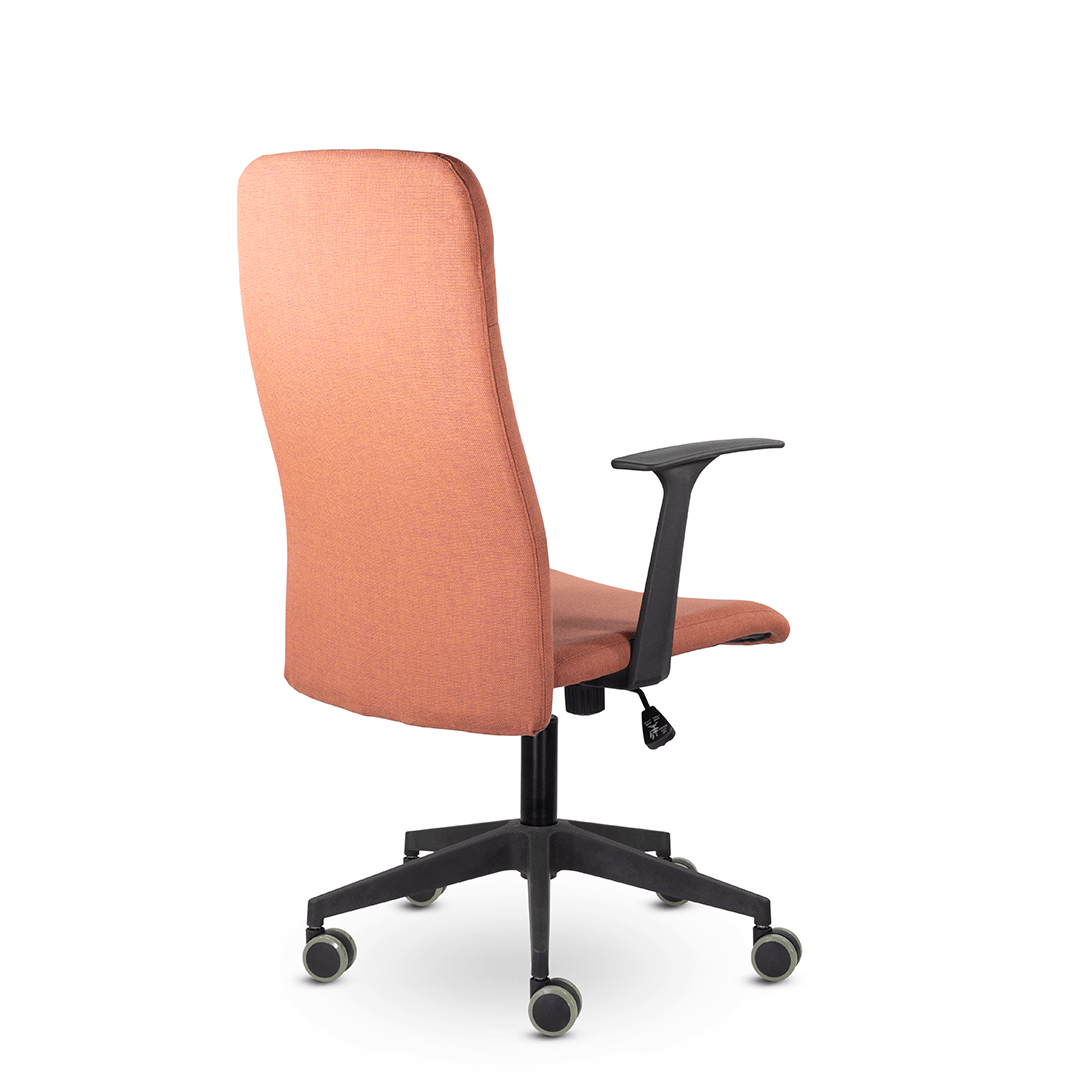 Компактное кресло имеет износостойкую обивку и удобные Т-образные подлокотники. Широкая эргономичная спинка сделают рабочий день максимально комфортным.