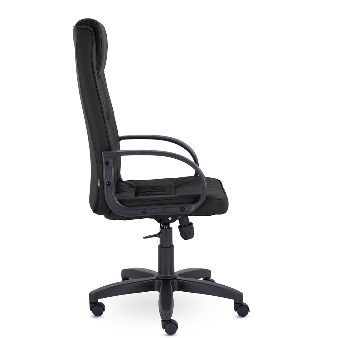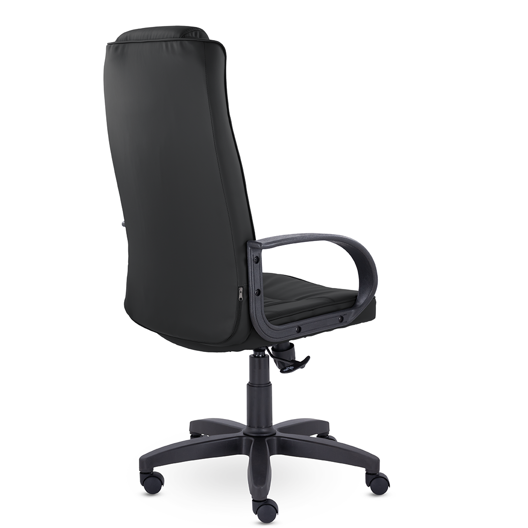 Спинка кресла украшена декоративными прострочками, которые разделяют подголовник и зону поясничной поддержки. Это солидное кресло станет отличным дополнением кабинета руководителя.
