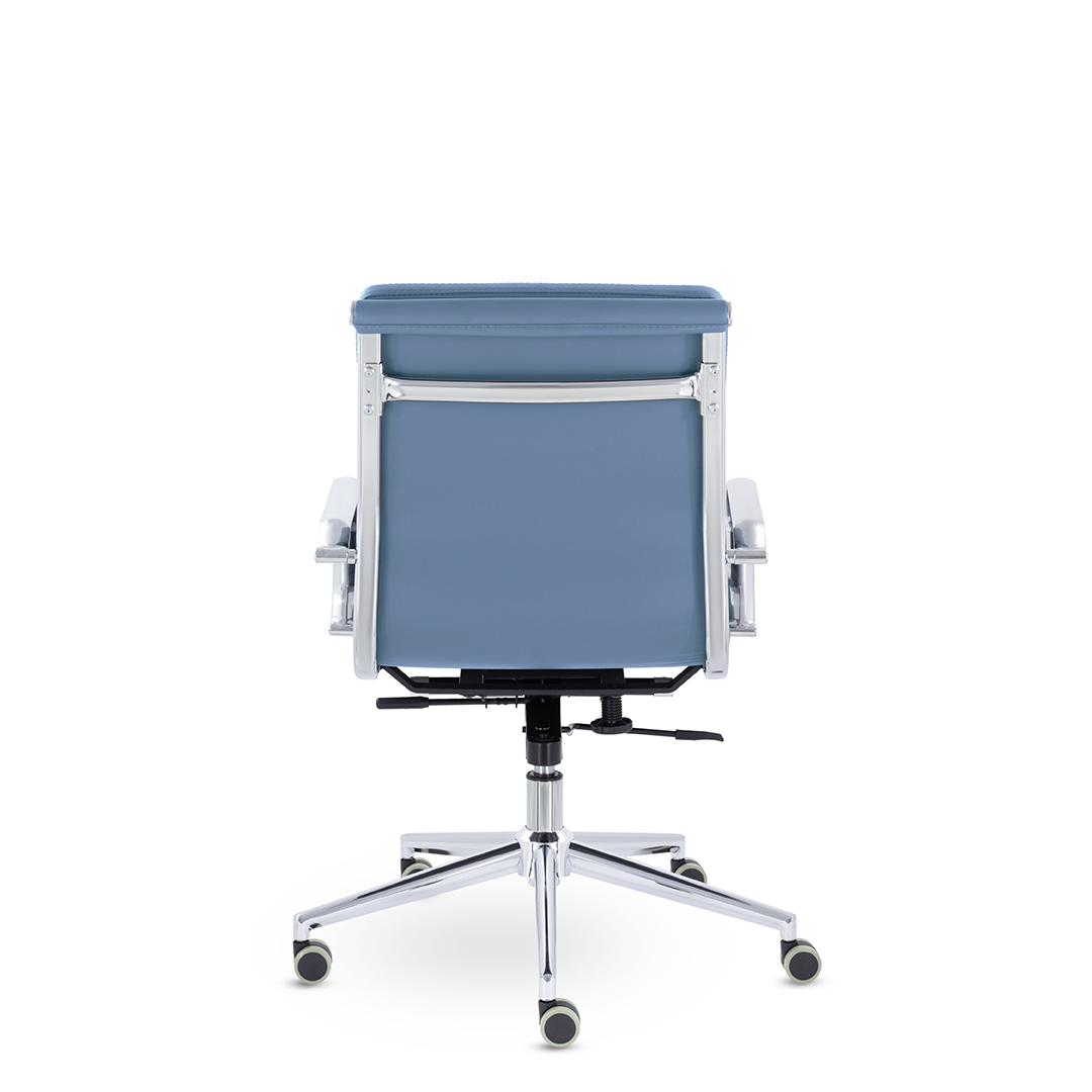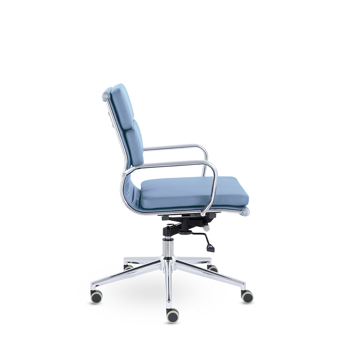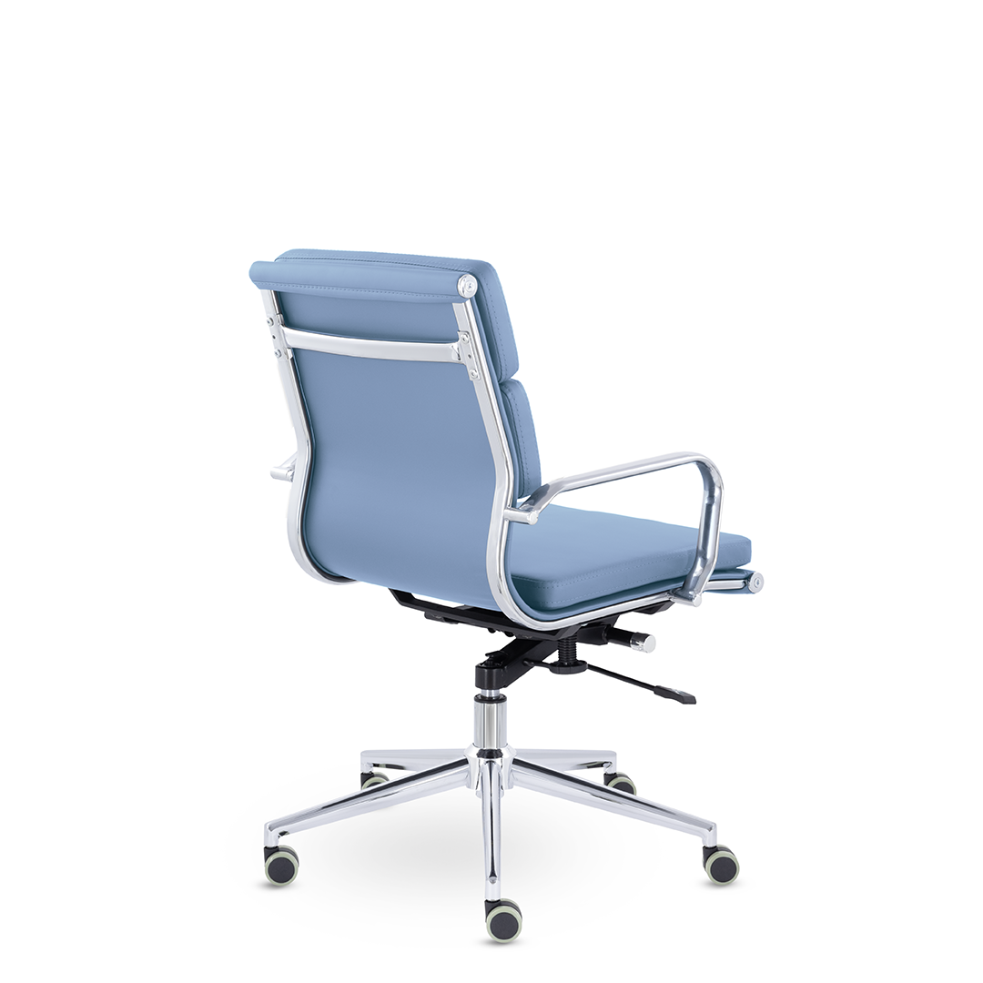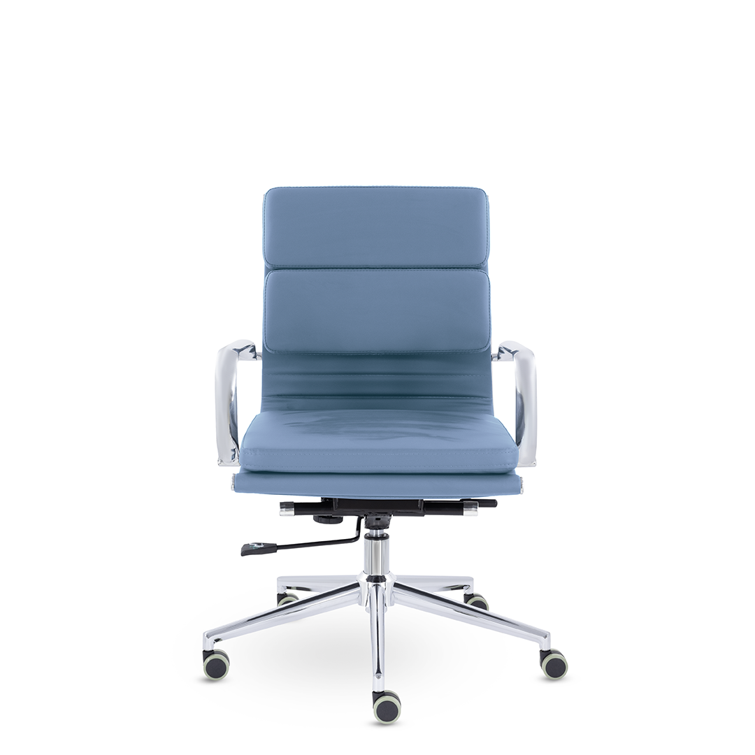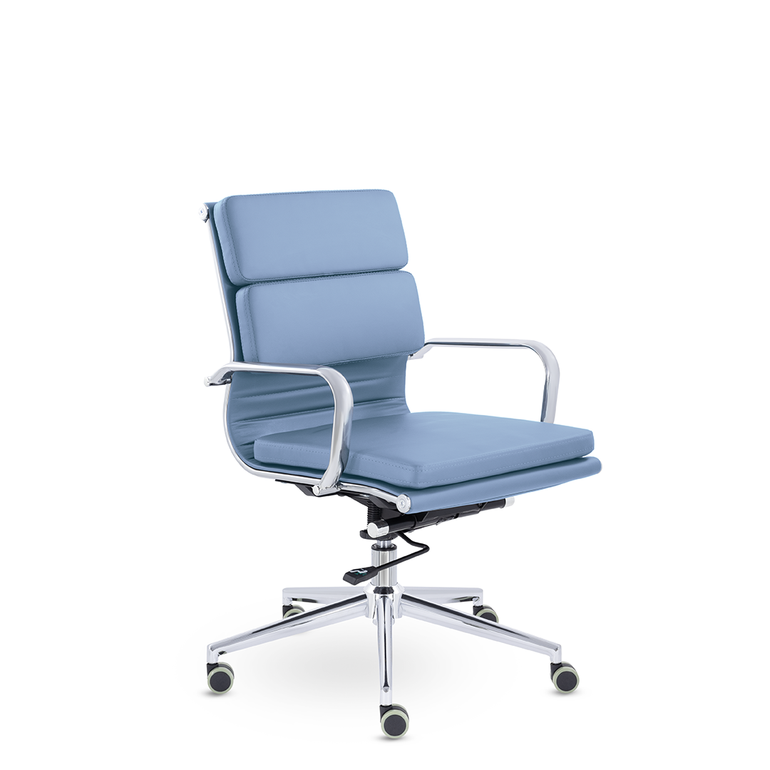 Кресло руководителя в современном металлическом каркасе. Комфорт создается благодаря мягким элементам спинки и сиденья. Зеркальный хромированный каркас и узкая крестовина задают современный стиль креслу. Кресло отлично смотрится в строгих и открытых кабинетах.