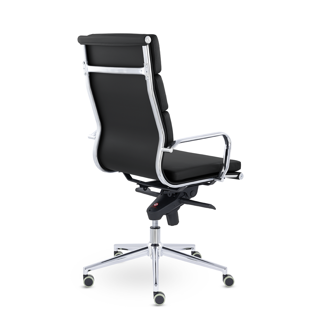 Кресло руководителя в современном металлическом каркасе. Комфорт создается благодаря мягким элементам спинки и сиденья. Зеркальный хромированный каркас и узкая крестовина задают современный стиль. Кресло отлично смотрится в строгих и открытых кабинетах. Механизм качания - мультиблок.