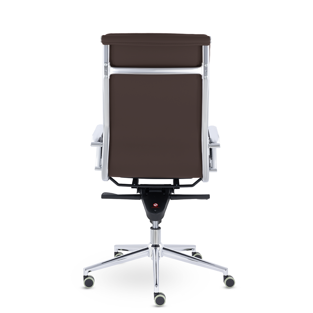 Кресло руководителя в современном металлическом каркасе. Комфорт создается благодаря мягким элементам спинки и сиденья. Зеркальный хромированный каркас и узкая крестовина задают современный стиль. Кресло отлично смотрится в строгих и открытых кабинетах. Механизм качания - мультиблок.