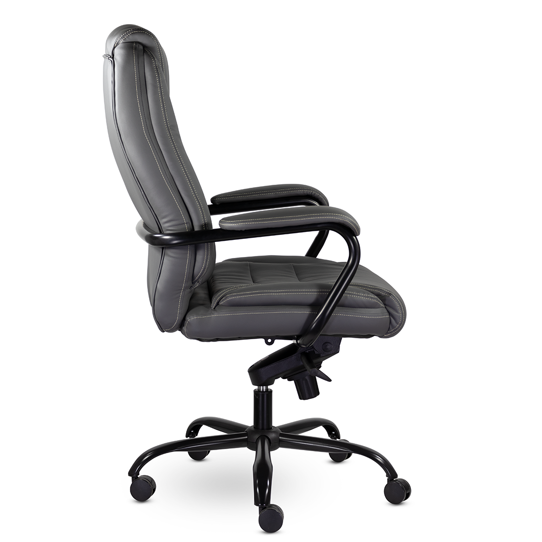 Массивное кресло руководителя с широкой эргономичной спинкой и поясничной поддержкой. Кресло оснащено увеличенными мягкими подушками на спинке и сидении, подголовник ярко выражен. Усиление каркаса выполнено за счет металлической рамы, переходящей из-под сидения за спинку кресла. Механизм качания - мультиблок. Жесткость хода свободного отклонения спинки регулируется пружинным блоком. Кресло имеет повышенную нагрузку до 150 кг. Разнообразная палитра цветов обивочного материала.