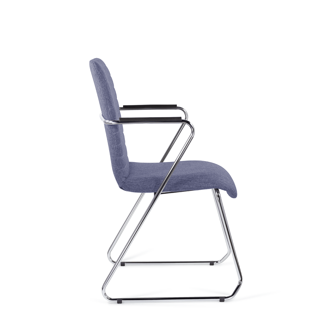 Уникальный каркас из металла и узкие подлокотники с небольшими накладками придают конструкции легкость и прочность. Горизонтальные строчки на спинке подчеркивают элегантный внешний вид. Хромированный каркас выдерживает до 120 кг.