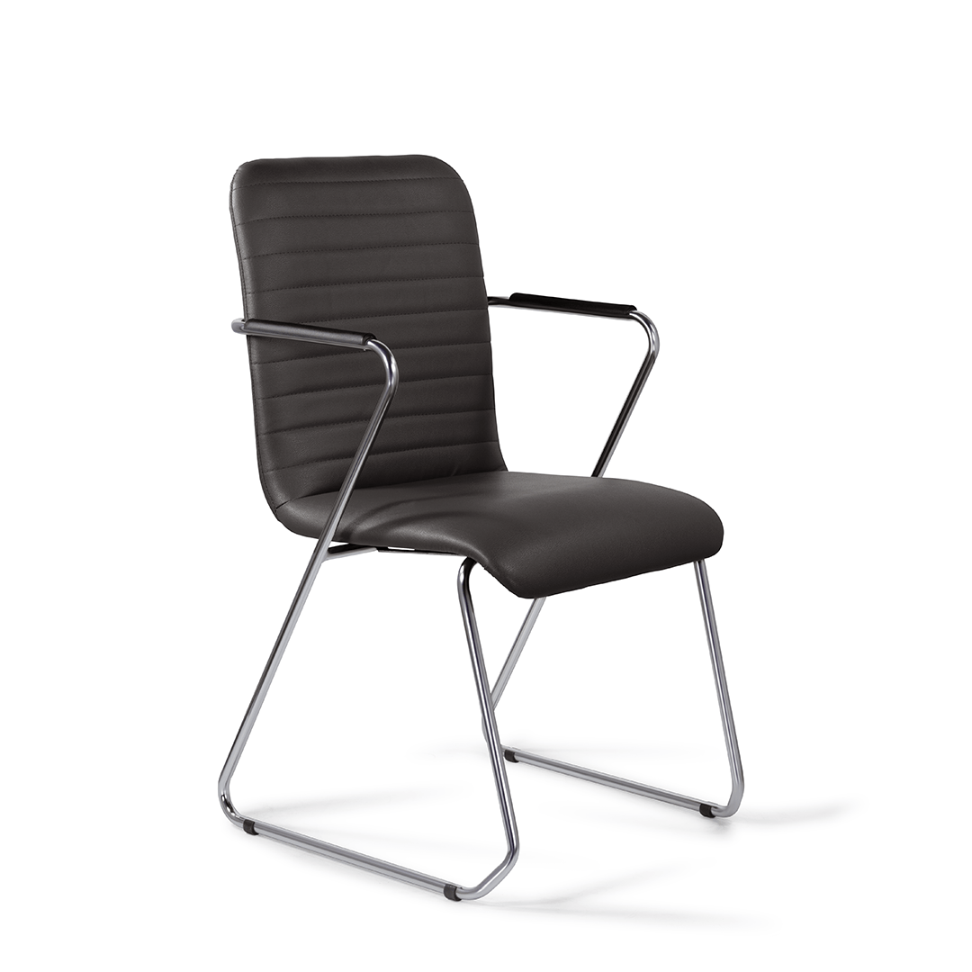 Уникальный каркас из металла и узкие подлокотники с небольшими накладками придают конструкции легкость и прочность. Горизонтальные строчки на спинке подчеркивают элегантный внешний вид. Хромированный каркас выдерживает до 120 кг.