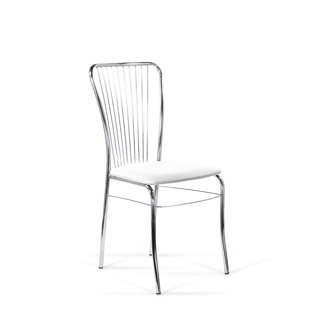 Благодаря оригинальной конструкции спинки, выполненной из тонких металлических стержней, напоминающих натянутые струны, стул выглядит стильно. Каркас выполнен из хрома.