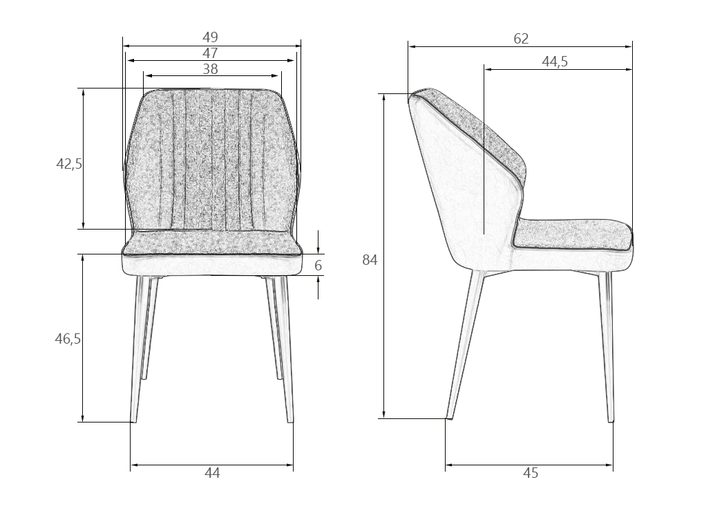 Стул обеденный DOBRIN KEVIN, черные матовые ножки, Сиденье серая ткань FC-09, Спинка антрацит кожзам RU-08