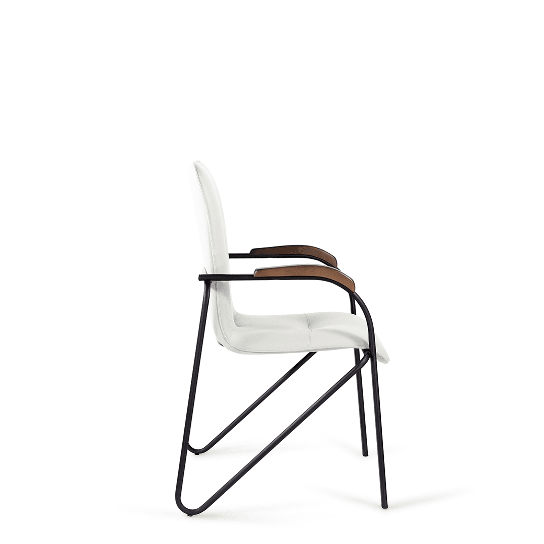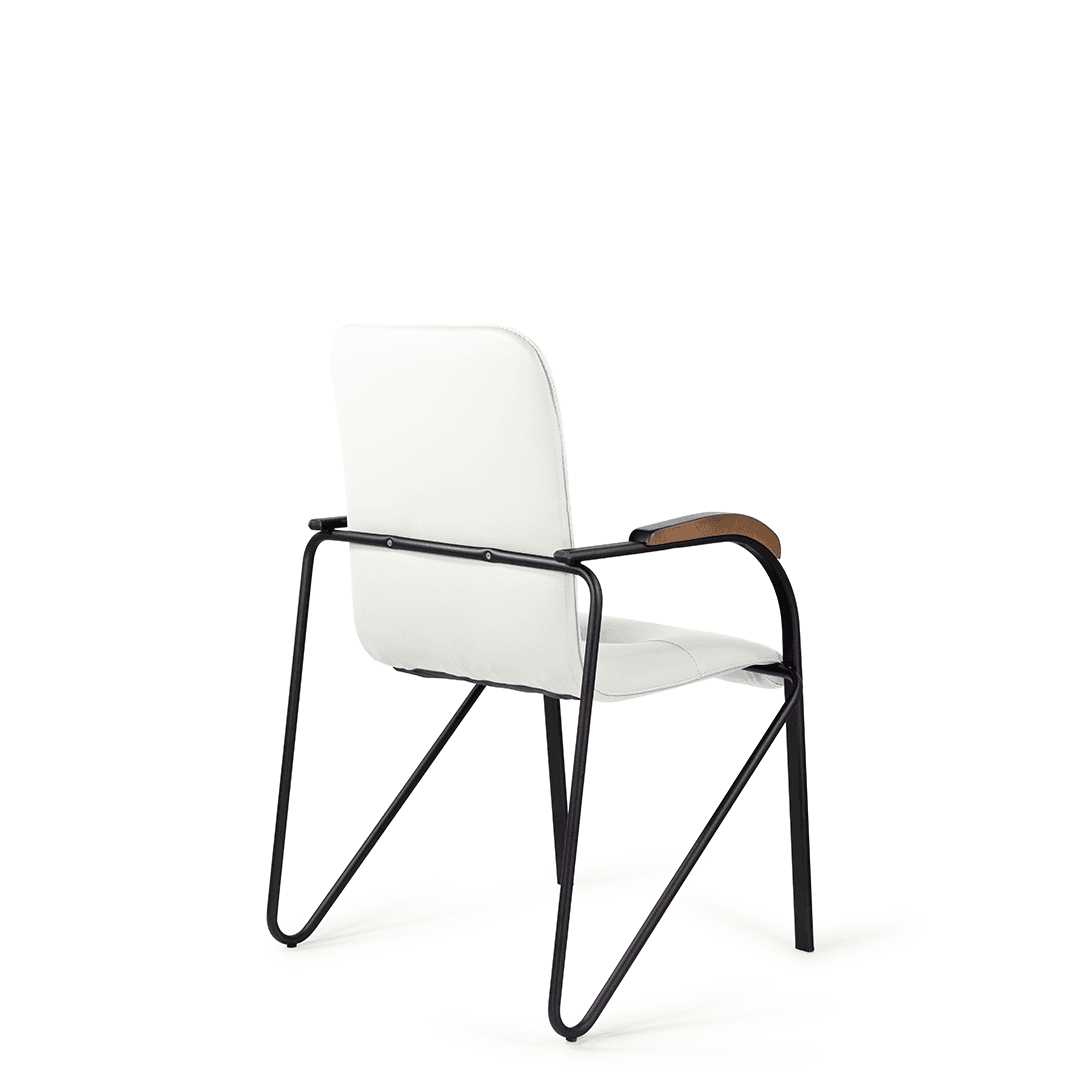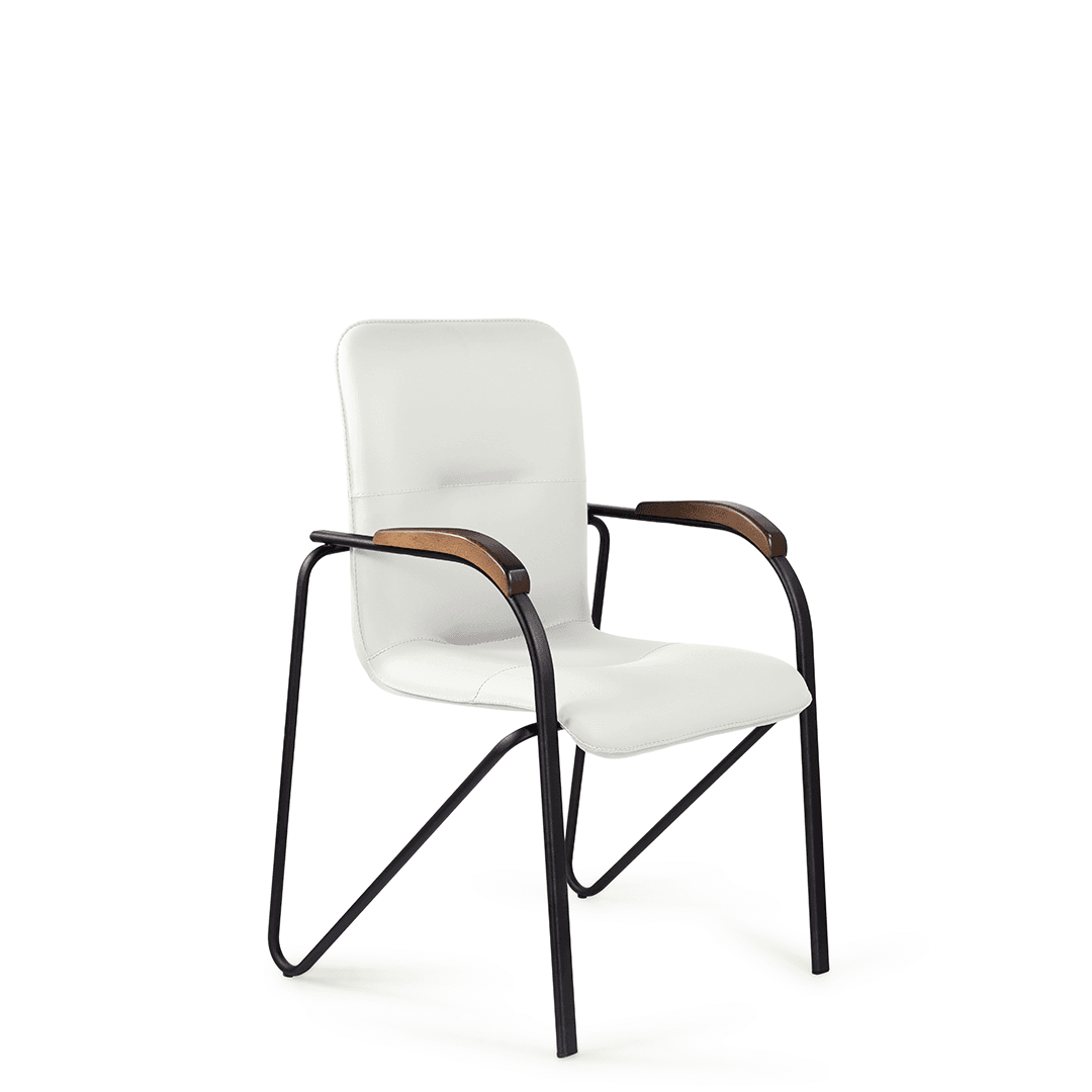 Конференц-кресло идеально будет смотреться как в офисе, так и дома. Интересный каркас и деревянные накладки на металлических подлокотниках придают креслу элегантный внешний вид.