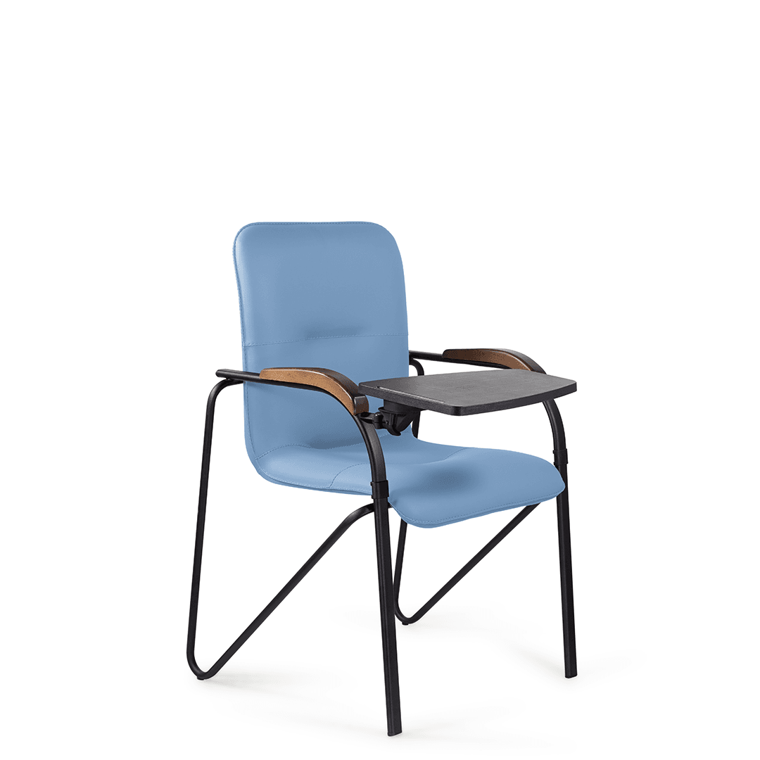 Конференц-кресло идеально будет смотреться как в офисе, так и дома. Интересный каркас и деревянные накладки на металлических подлокотниках придают креслу элегантный внешний вид. К креслу прилагается столик, выполненный из пластика. Модель отлично подойдет для конференц-залов, переговорных, актовых залов.