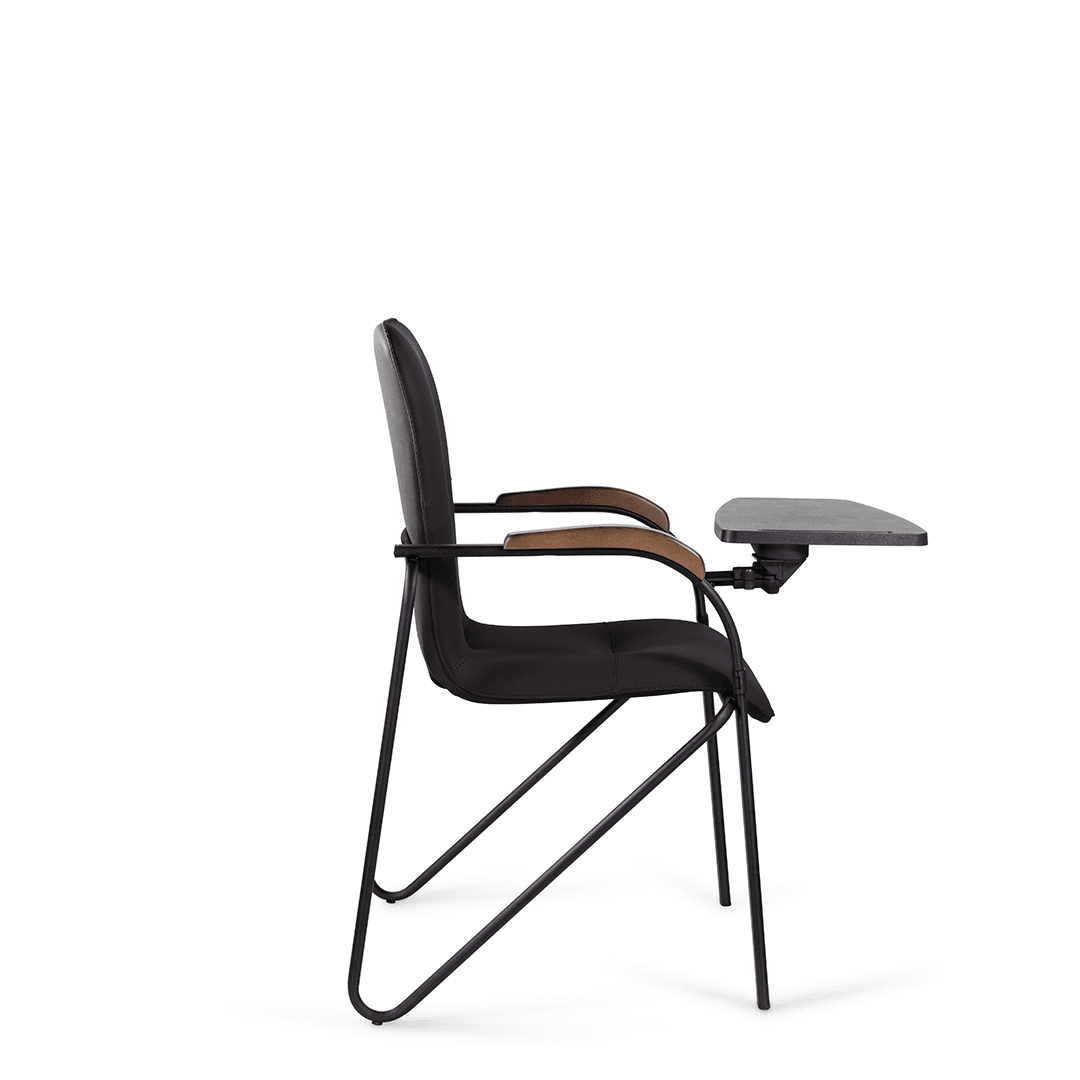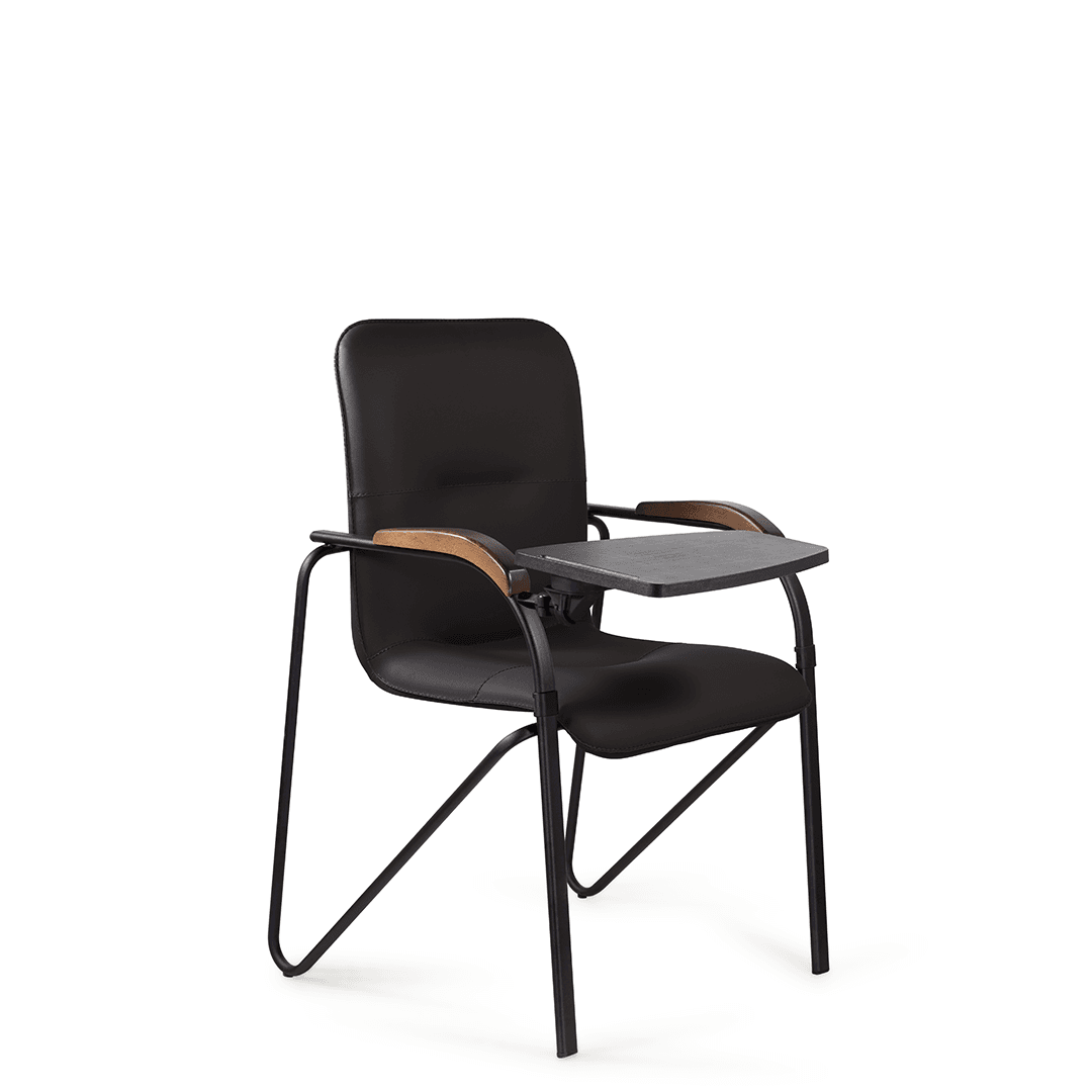Конференц-кресло идеально будет смотреться как в офисе, так и дома. Интересный каркас и деревянные накладки на металлических подлокотниках придают креслу элегантный внешний вид. К креслу прилагается столик, выполненный из пластика. Модель отлично подойдет для конференц-залов, переговорных, актовых залов.
