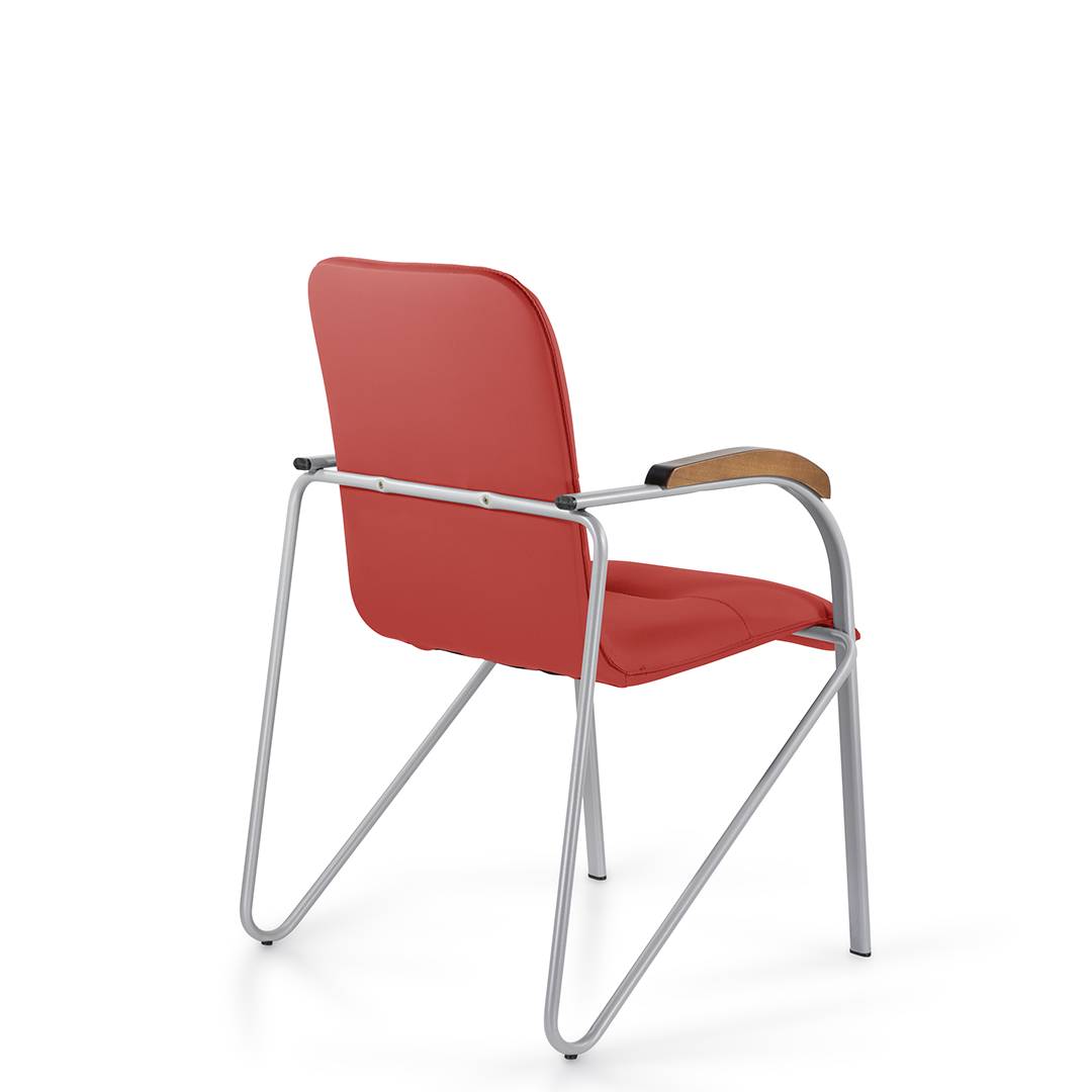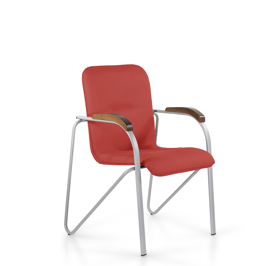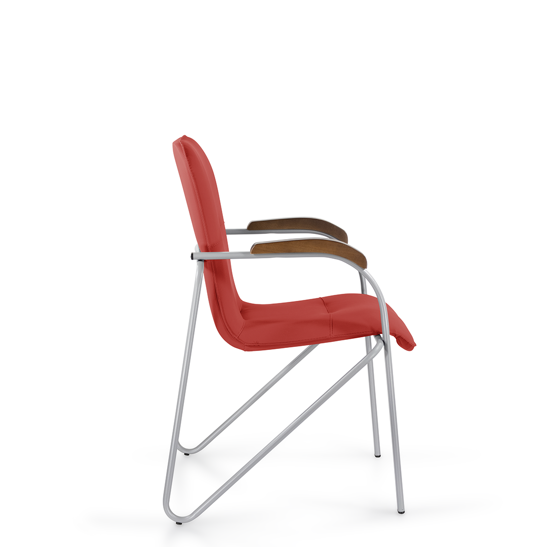 Конференц-кресло идеально будет смотреться как в офисе, так и дома. Интересный каркас и деревянные накладки на металлических подлокотниках придают креслу элегантный внешний вид.