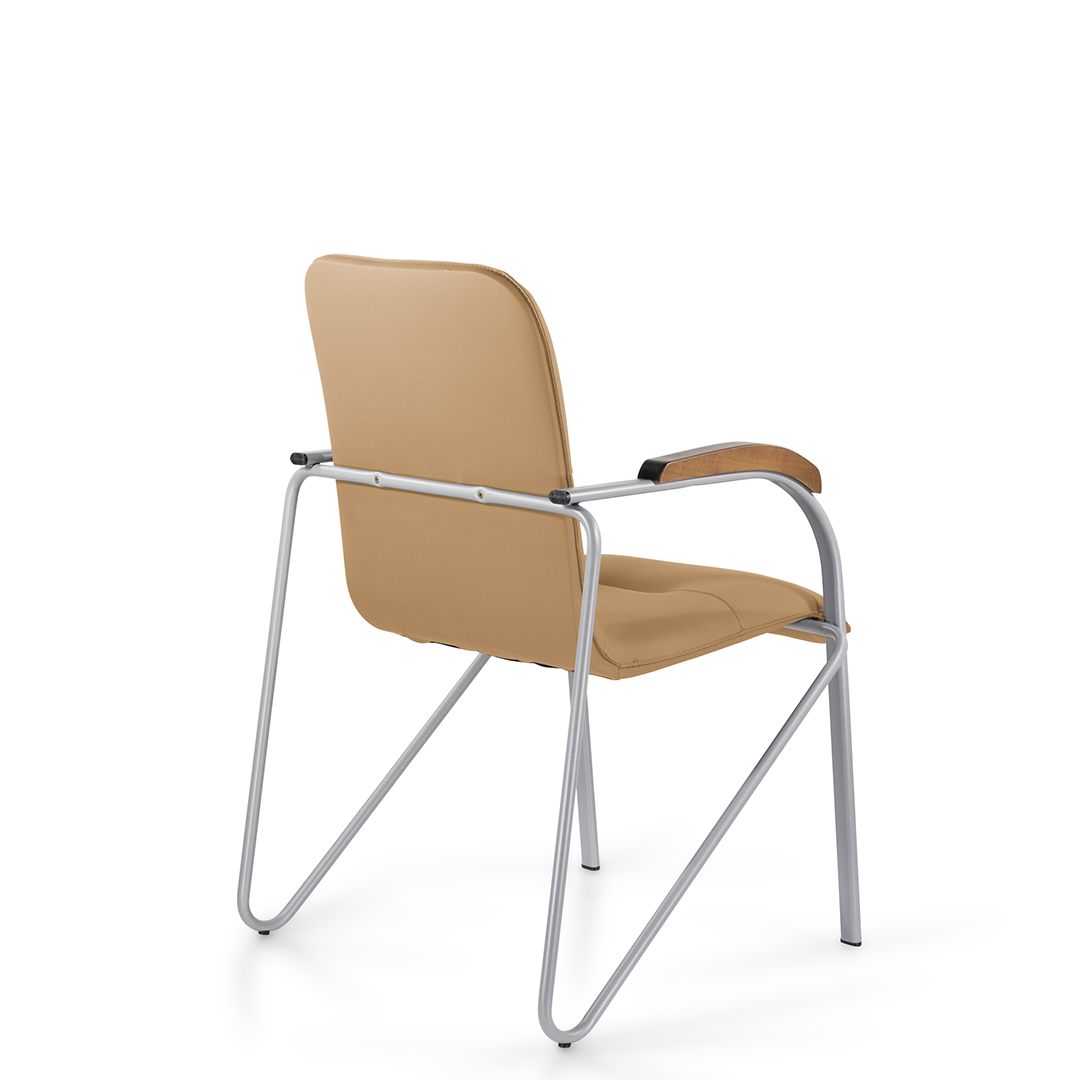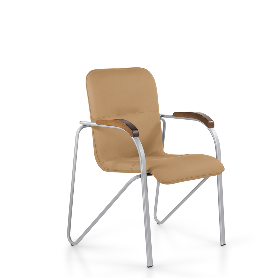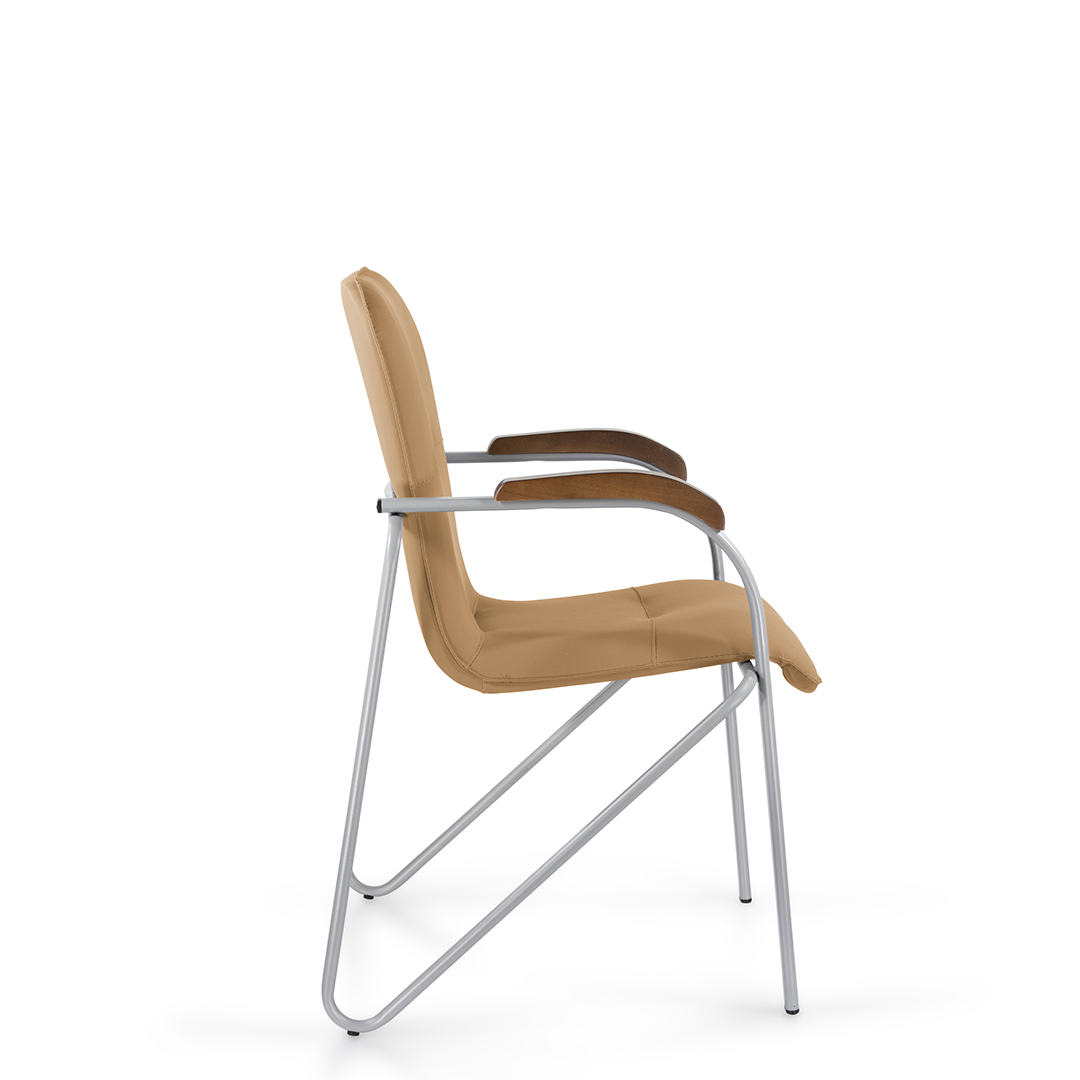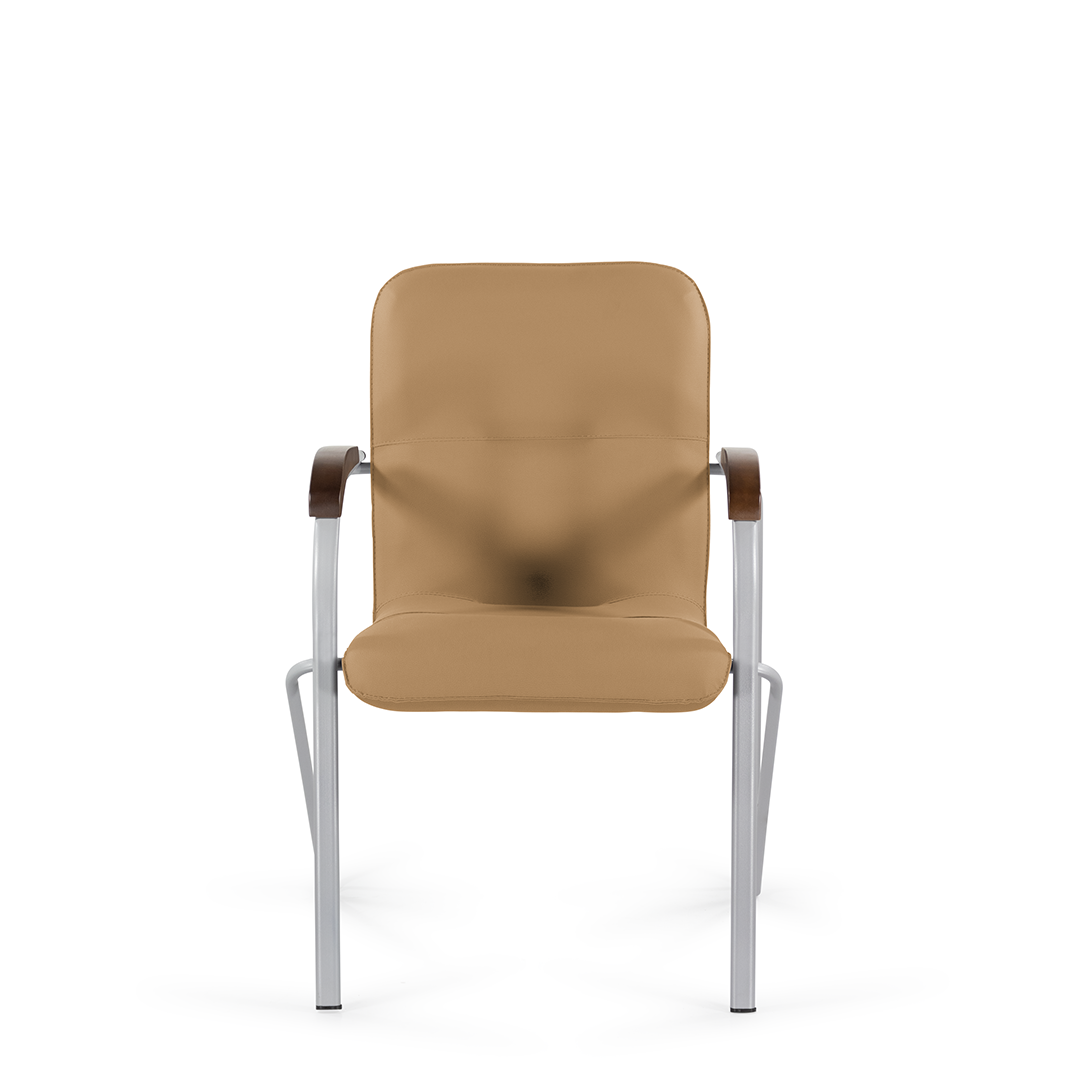 Конференц-кресло идеально будет смотреться как в офисе, так и дома. Интересный каркас и деревянные накладки на металлических подлокотниках придают креслу элегантный внешний вид.
