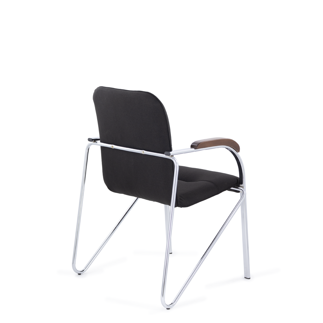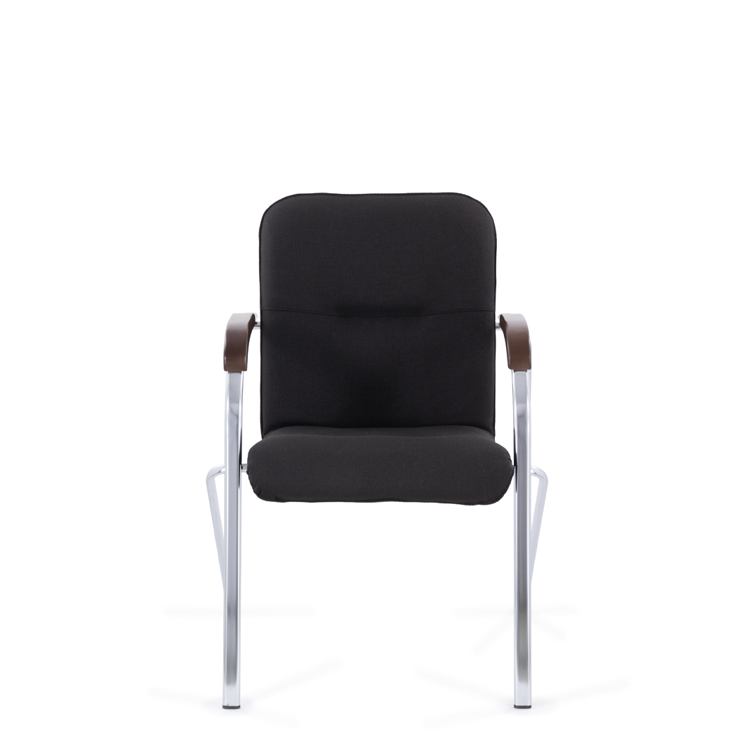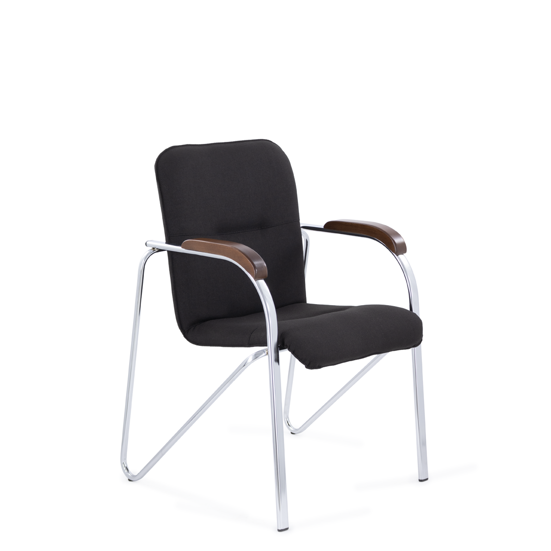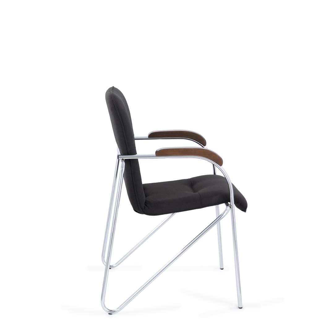 Конференц-кресло идеально будет смотреться как в офисе, так и дома. Интересный каркас и деревянные накладки на металлических подлокотниках придают креслу элегантный внешний вид.