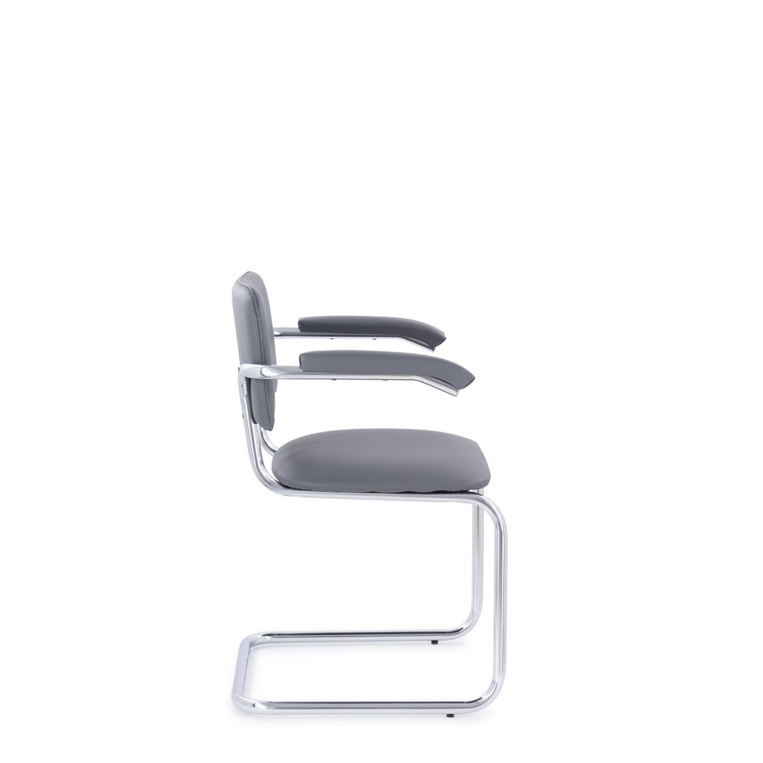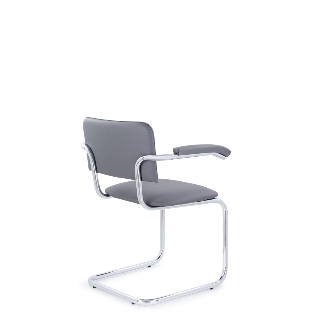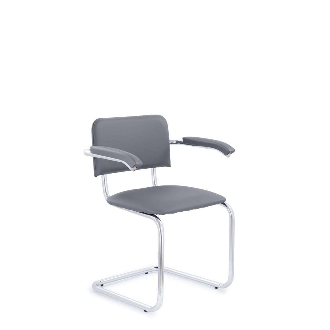 Классический стул для посетителей с подлокотниками, который отлично подойдет как для офиса, так и для дома. Конструкция стула обеспечивает легкий эффект качания. Хромированный каркас, подлокотники с мягкими накладками, мягкое сиденье и спинка.