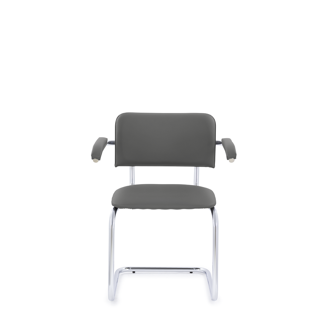 Классический стул для посетителей с подлокотниками, который отлично подойдет как для офиса, так и для дома. Конструкция стула обеспечивает легкий эффект качания. Хромированный каркас, подлокотники с мягкими накладками, мягкое сиденье и спинка.