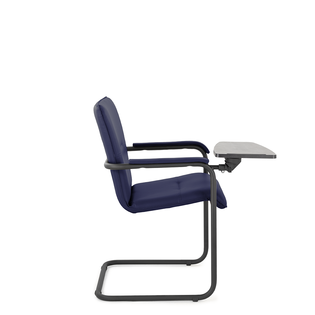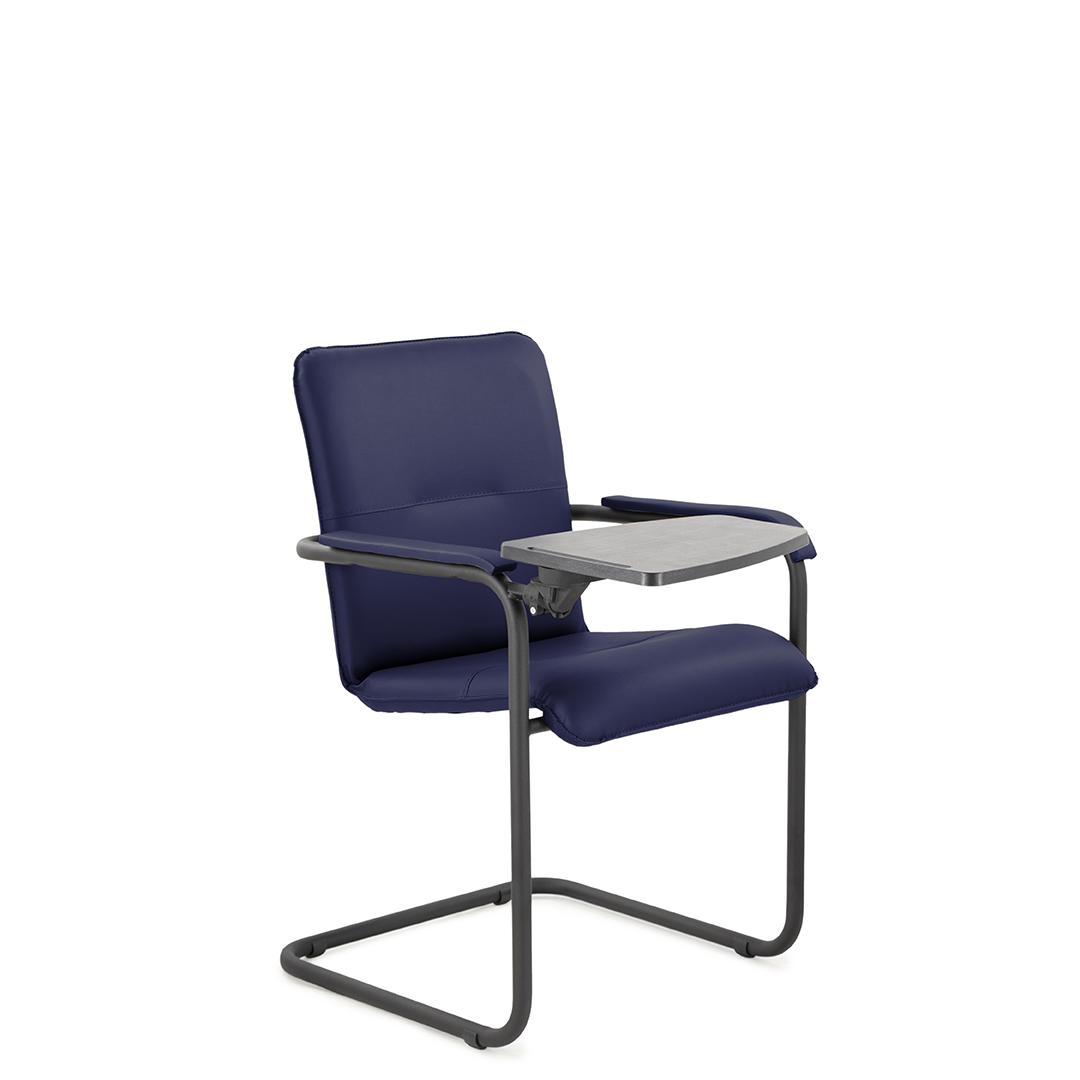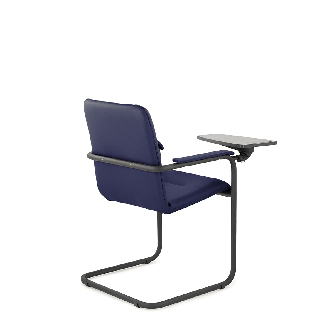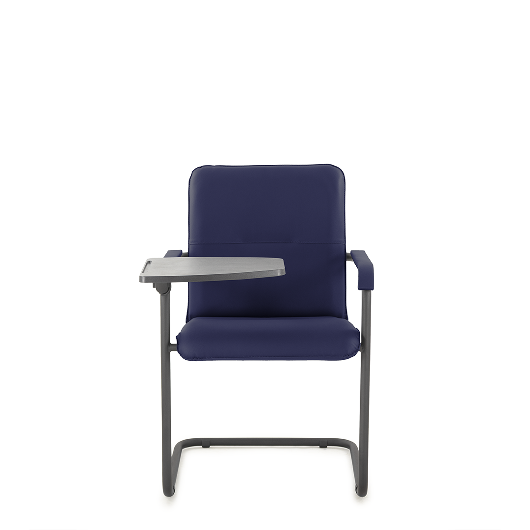 Элегантное конференц-кресло для посетителей имеет широкий выбор расцветки обивки кресла, мягкие подлокотники с накладками люкс и окрашенный в черный цвет каркас. К креслу прилагается столик, выполненный из пластика. Модель отлично подойдет для конференц-залов, переговорных, актовых залов.