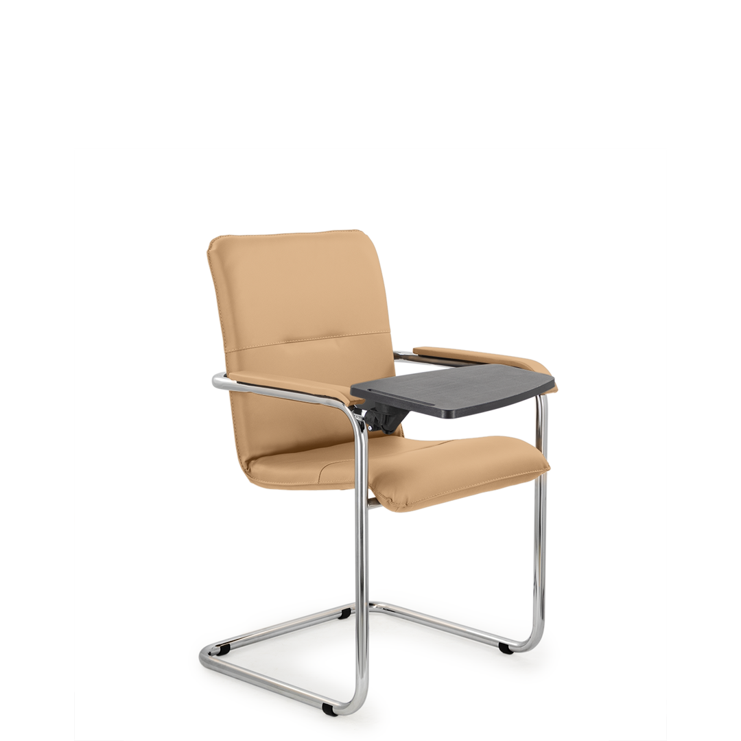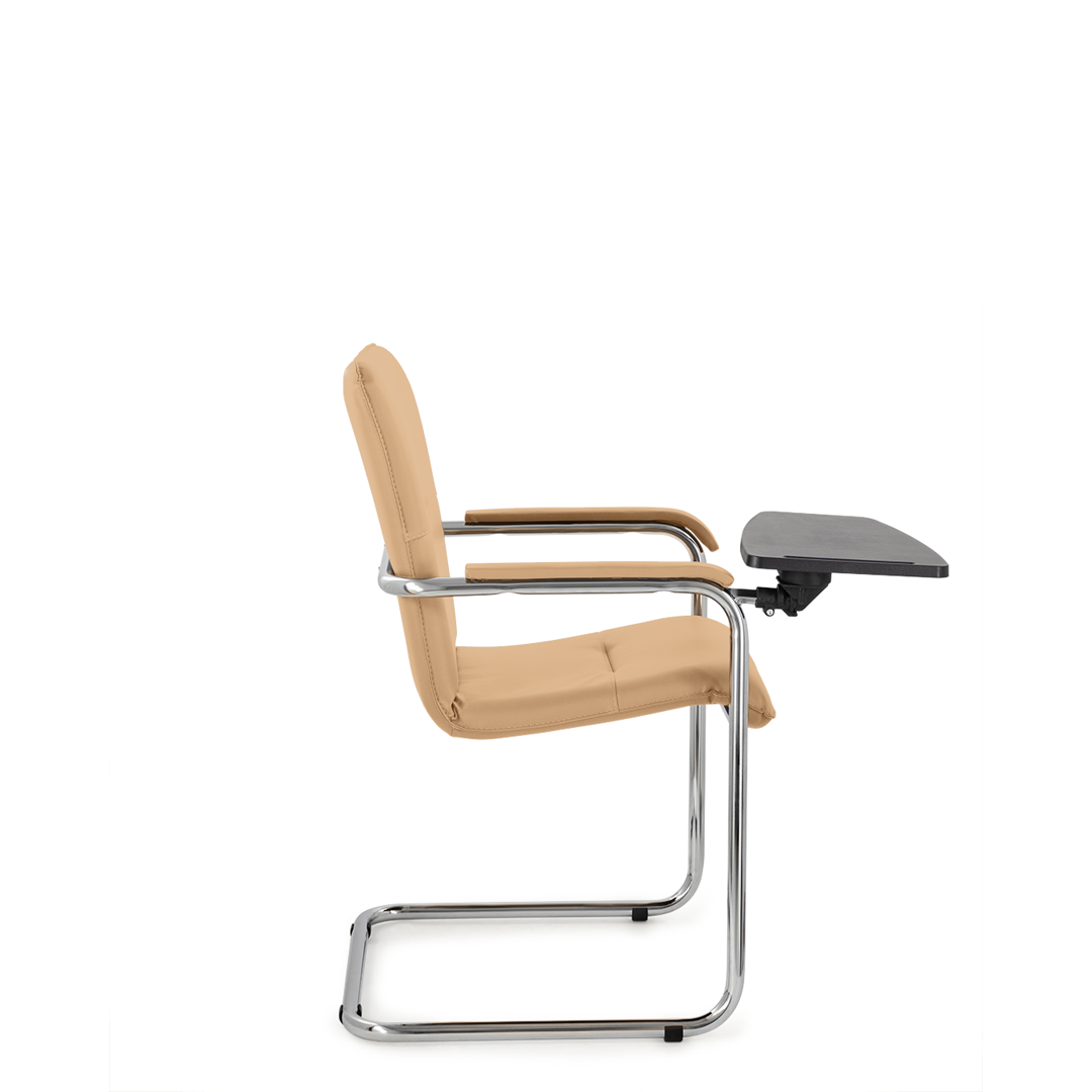 Элегантное кресло для посетителей имеет широкий выбор расцветки обивки кресла, мягкие подлокотники с накладками люкс и хромированный каркас. К креслу прилагается столик, выполненный из пластика. Модель отлично подойдет для конференц-залов, переговорных, актовых залов.