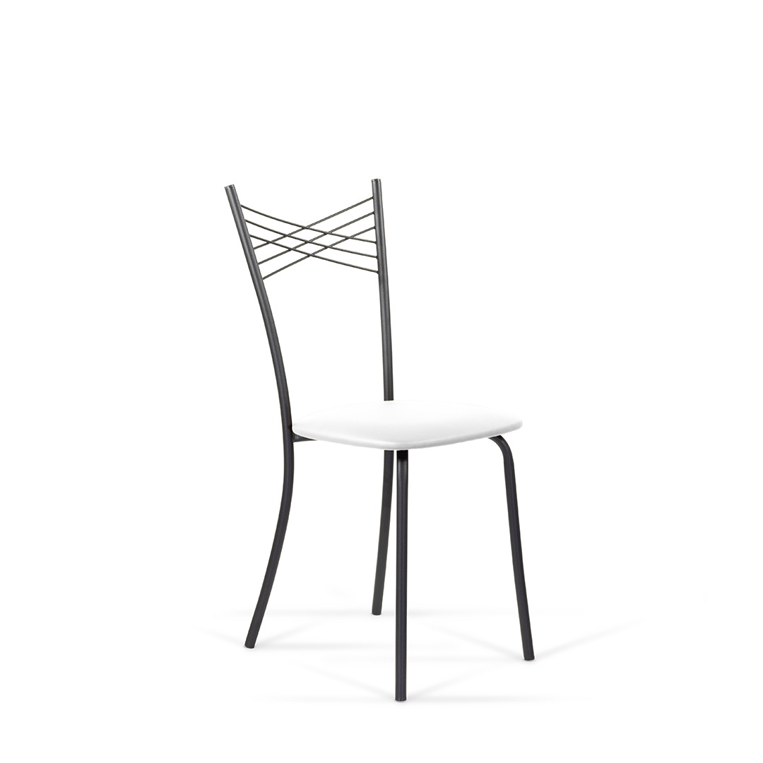Воздушная модель стула имеет интересный дизайн спинки, представляющую собой крестообразное пресечение нескольких металлических нитей, образующих в центре маленькие ромбики. Каркас стула выполнен из металла.