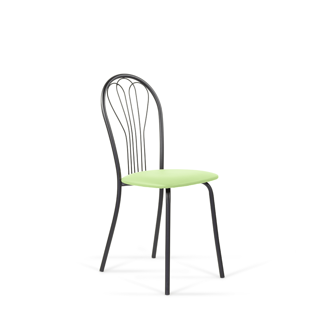 Небольшой стул с округлой спинкой и мягким сиденьем может выступать как часть обеденной зоны, а может быть самостоятельной деталью в интерьере. Каркас стула выполнен из металла.