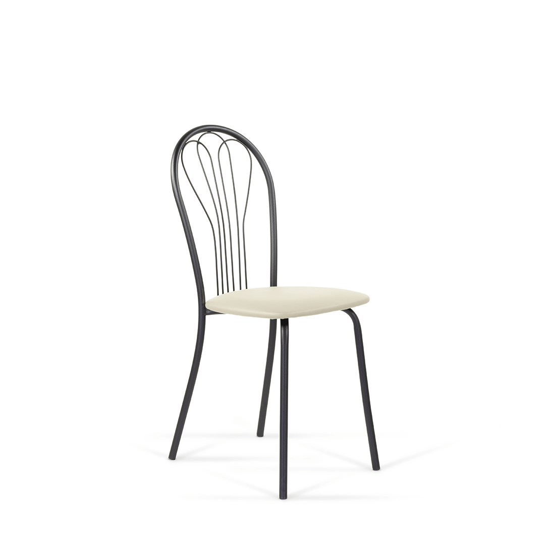 Небольшой стул с округлой спинкой и мягким сиденьем может выступать как часть обеденной зоны, а может быть самостоятельной деталью в интерьере. Каркас стула выполнен из металла.