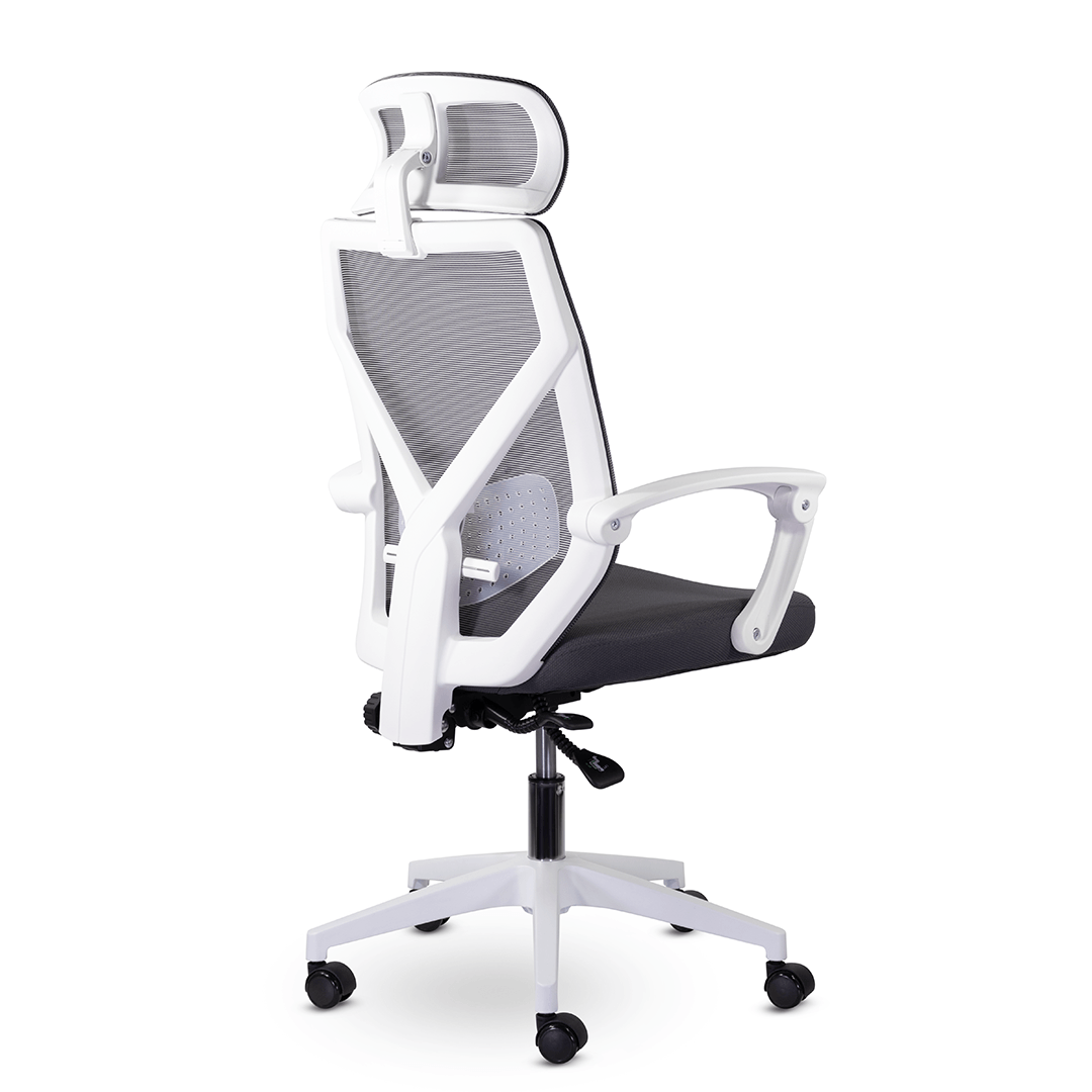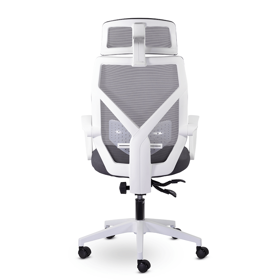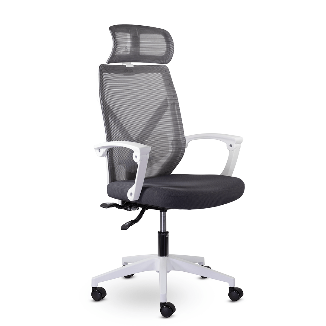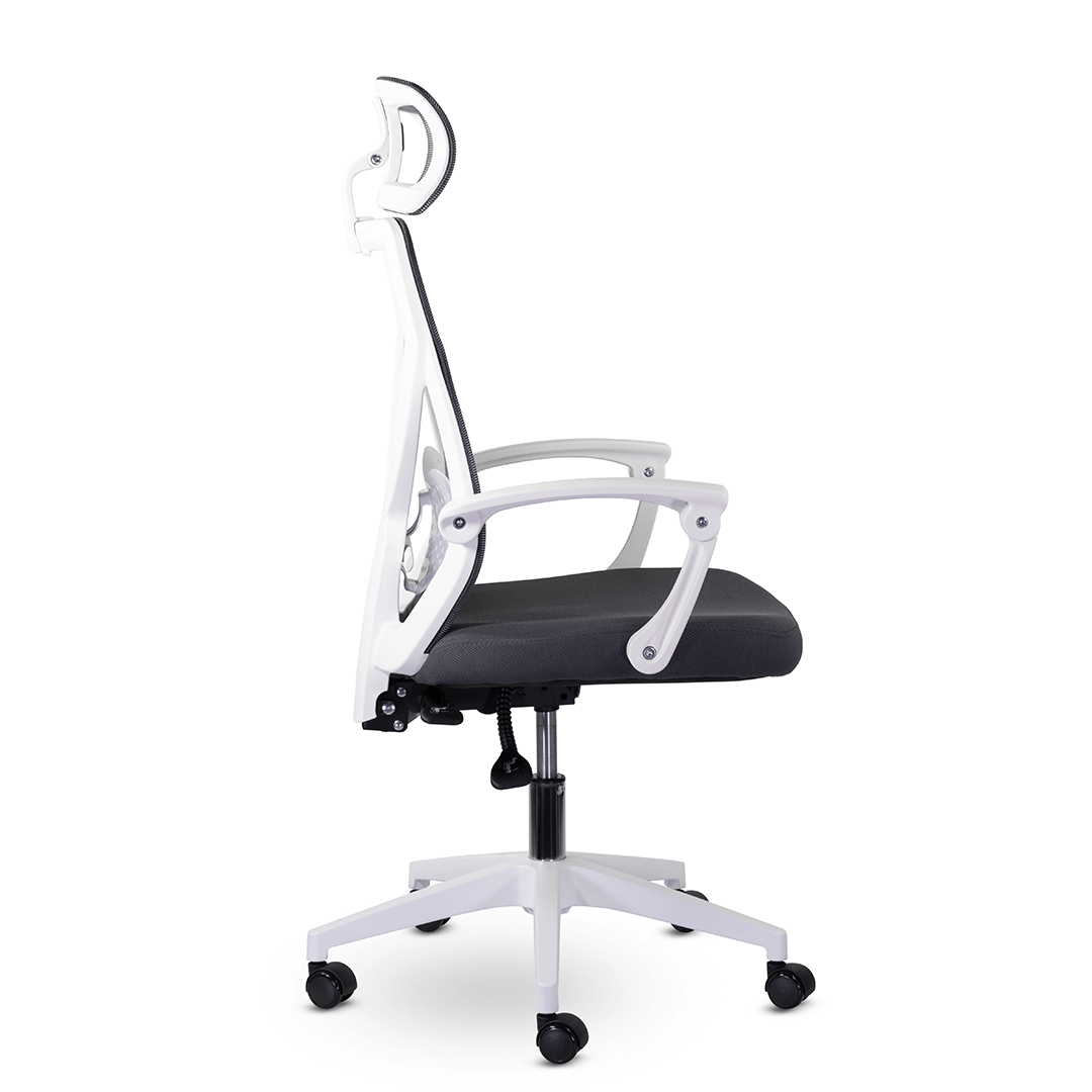 Кресло с уникальной системой трансформации подлокотников при активации механизма качания 1/3. Дополнительный комфорт в зоне поясницы сделан за счет регулируемого по высоте блока из прозрачного пластика. Изменение наклона и высоты подголовника способствует удобному расположению в кресле.