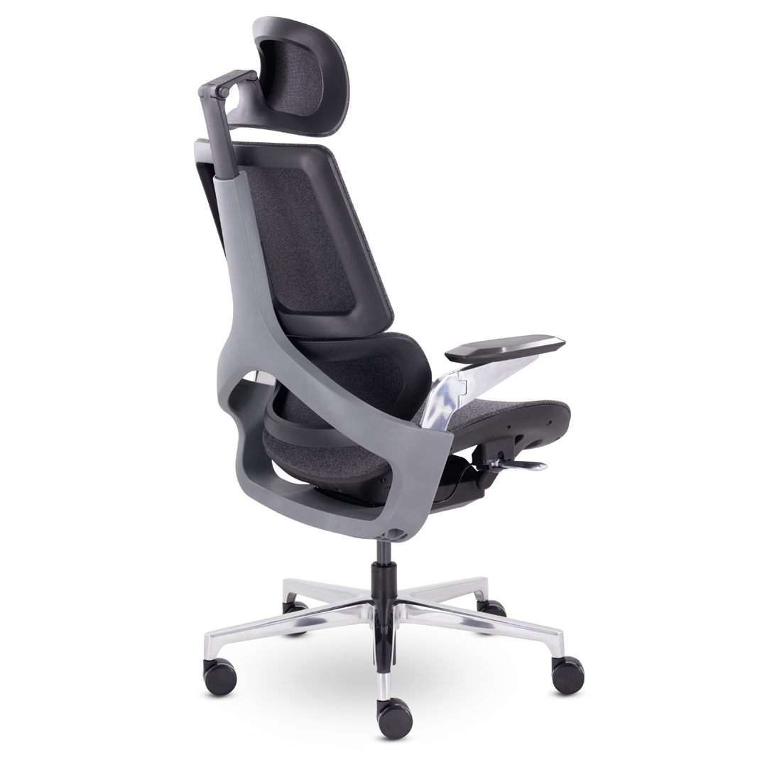 Современное кресло в стиле хай-тек. Анатомический дизайн спинки и регулируемый подголовник обеспечивают комфортную посадку на протяжении всего рабочего дня. Подлокотники регулируются по высоте и поворачиваются на 30 градусов в разные стороны. Прочная ткань обладает износостойкостью и воздухопроницаемостью. Модель отлично будет смотреться в open-офисах и коворкингах.