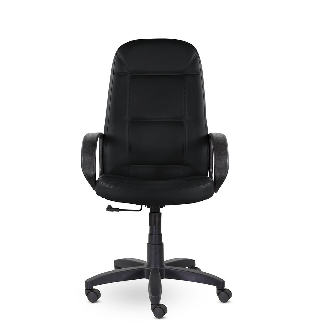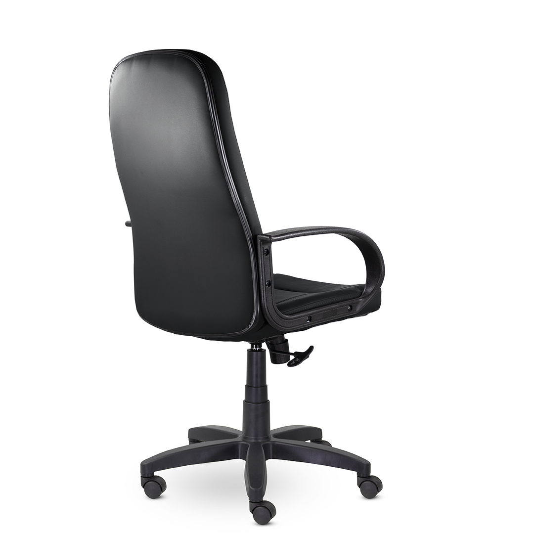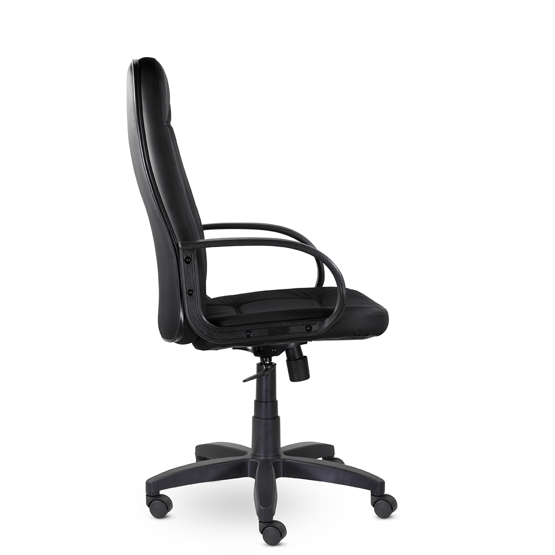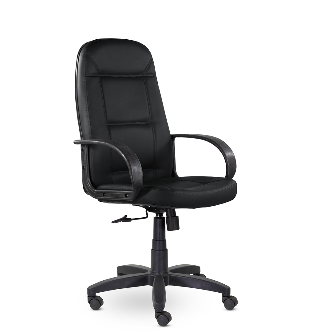 Высокая спинка с горизонтальными прострочками, облокотившись на которую ваша шея сможет отдохнуть, глубокое сидение и широкие подлокотники - все, что нужно для комфортного рабочего дня. Подойдет как для руководителей, так и для персонала. Пластиковая крестовина выдерживает вес до 100 кг.