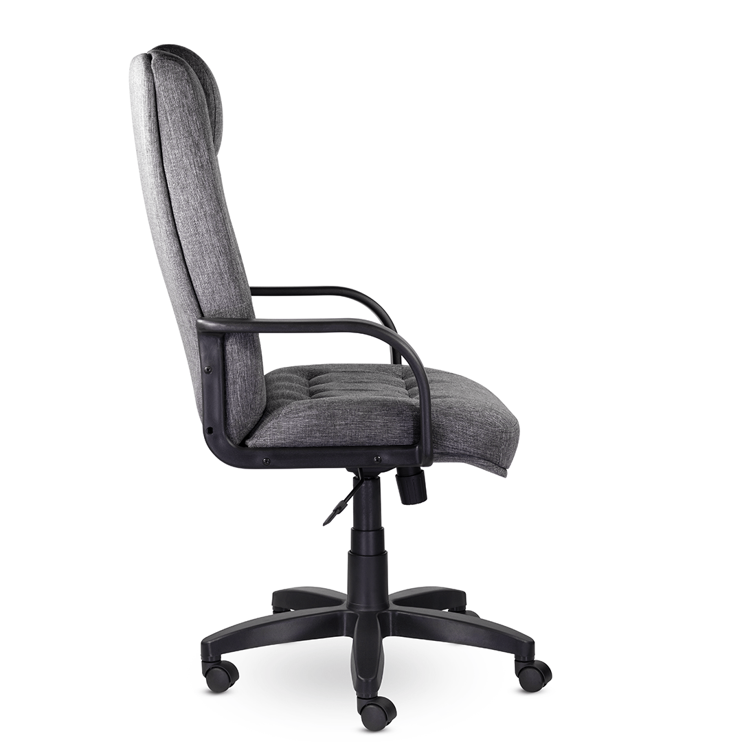 Стильное кресло руководителя с большим подголовником и рельефными подушками по всей спинке, разделенные стяжками. Подлокотники по длине всего сидения обеспечат комфортное положение рук на протяжении всего рабочего дня. Максимальная нагрузка 100 кг.