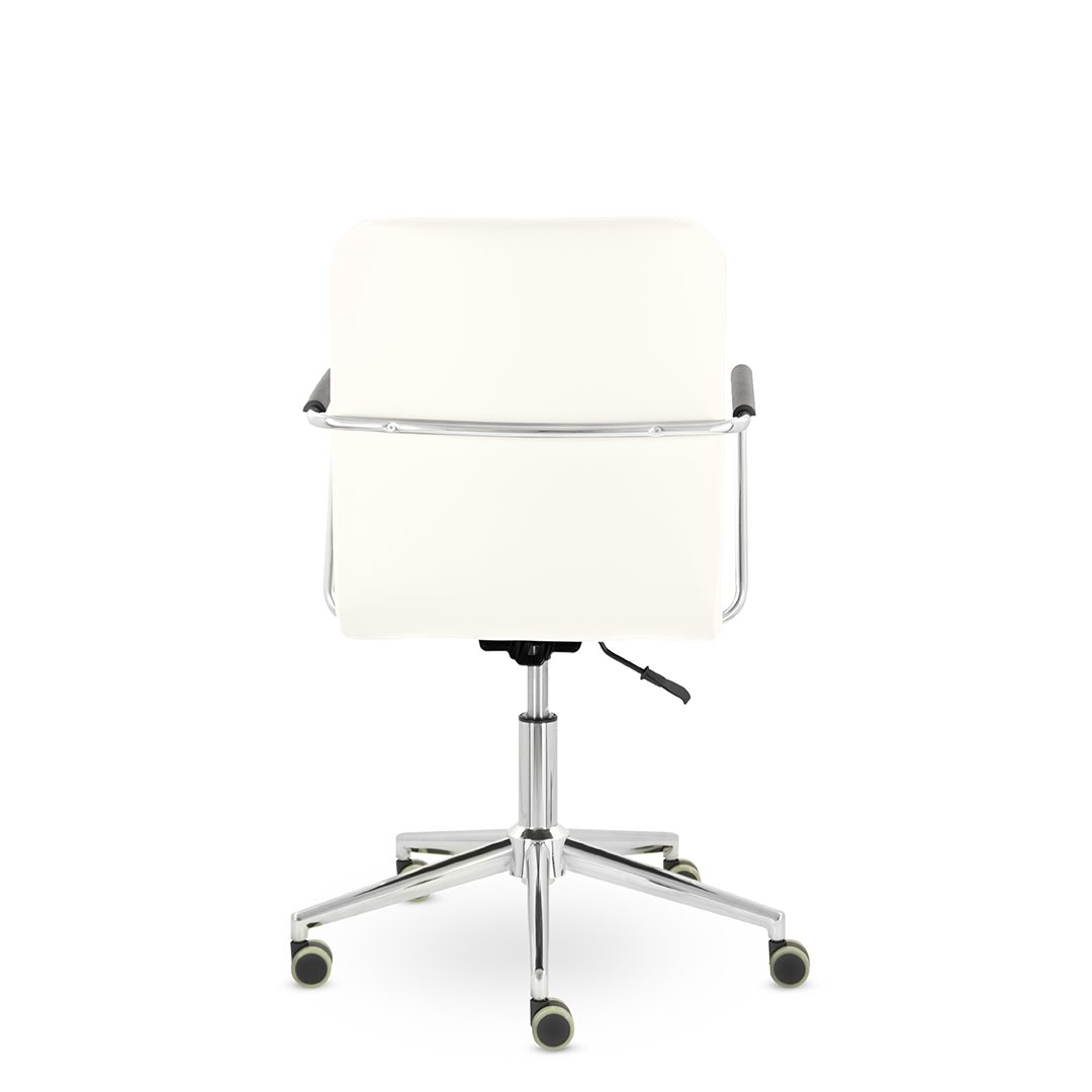 Уникальный каркас из металла и узкие хромированные подлокотники с небольшими пластиковыми накладками придают конструкции легкость и прочность. Горизонтальные строчки на спинке подчеркивают элегантный и современный вид.
