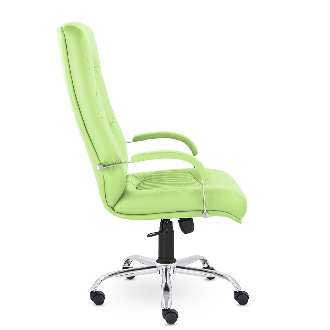 Кресло руководителя имеет две увеличенные подушки на спинке и сидении для поддержки спины и головы, которые разделяются декоративными вставками. Мягкие накладки на подлокотниках обеспечат комфортное положение рук. Максимальная нагрузка 120 кг.