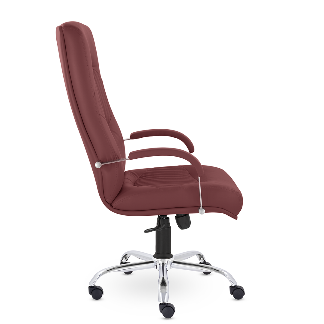 Кресло руководителя имеет две увеличенные подушки на спинке и сидении для поддержки спины и головы, которые разделяются декоративными вставками. Мягкие накладки на подлокотниках обеспечат комфортное положение рук. Максимальная нагрузка 120 кг.
