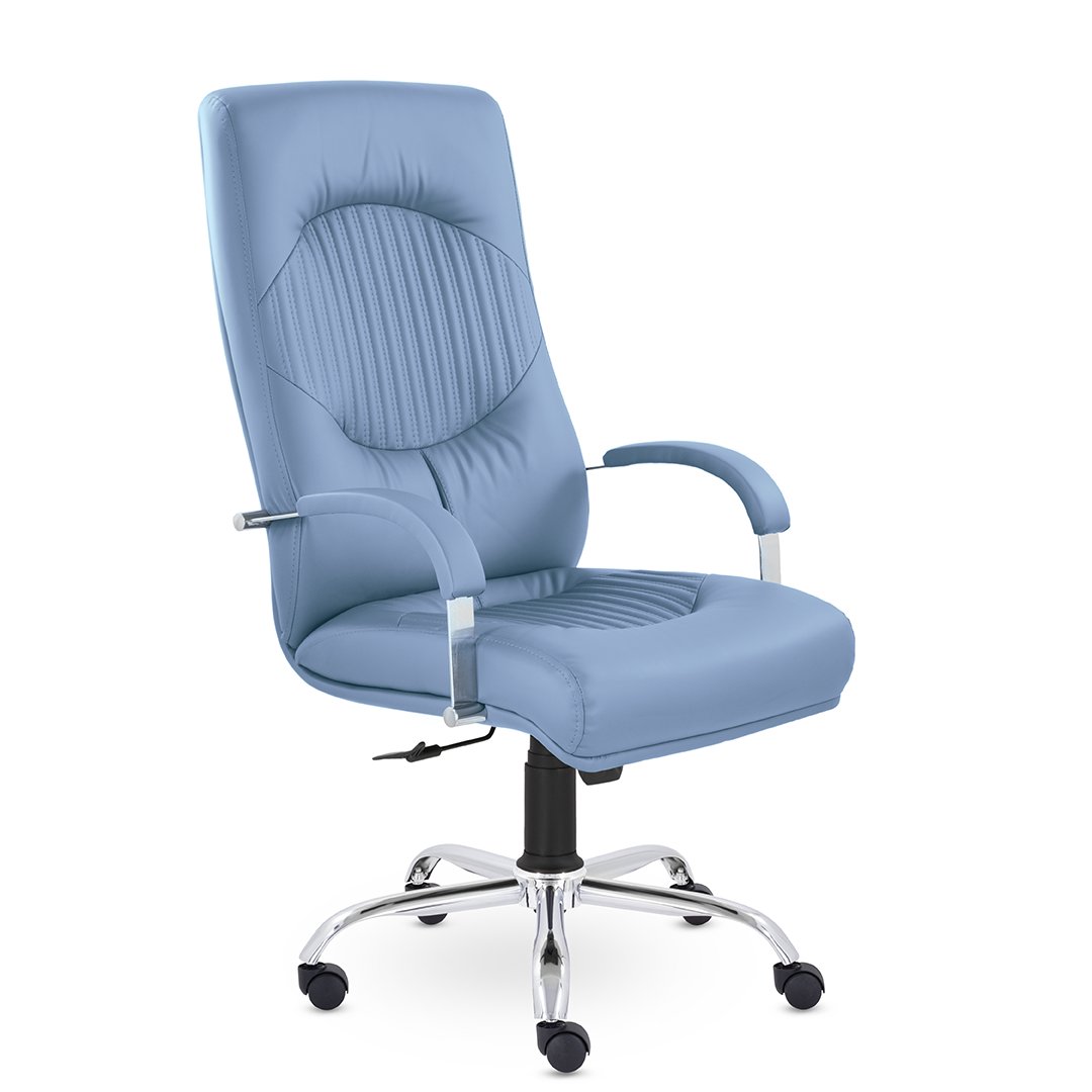 Кресло руководителя имеет две увеличенные подушки на спинке и сидении для поддержки спины и головы, которые разделяются декоративными вставками. Мягкие накладки на подлокотниках обеспечат комфортное положение рук. Максимальная нагрузка 120 кг.