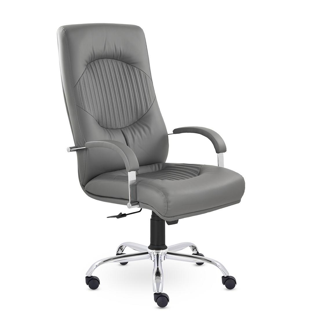 Кресло руководителя имеет две увеличенные подушки на спинке и сидении для поддержки спины и головы, которые разделяются декоративными вставками. Мягкие накладки на подлокотниках обеспечат комфортное положение рук. Максимальная нагрузка 120 кг.