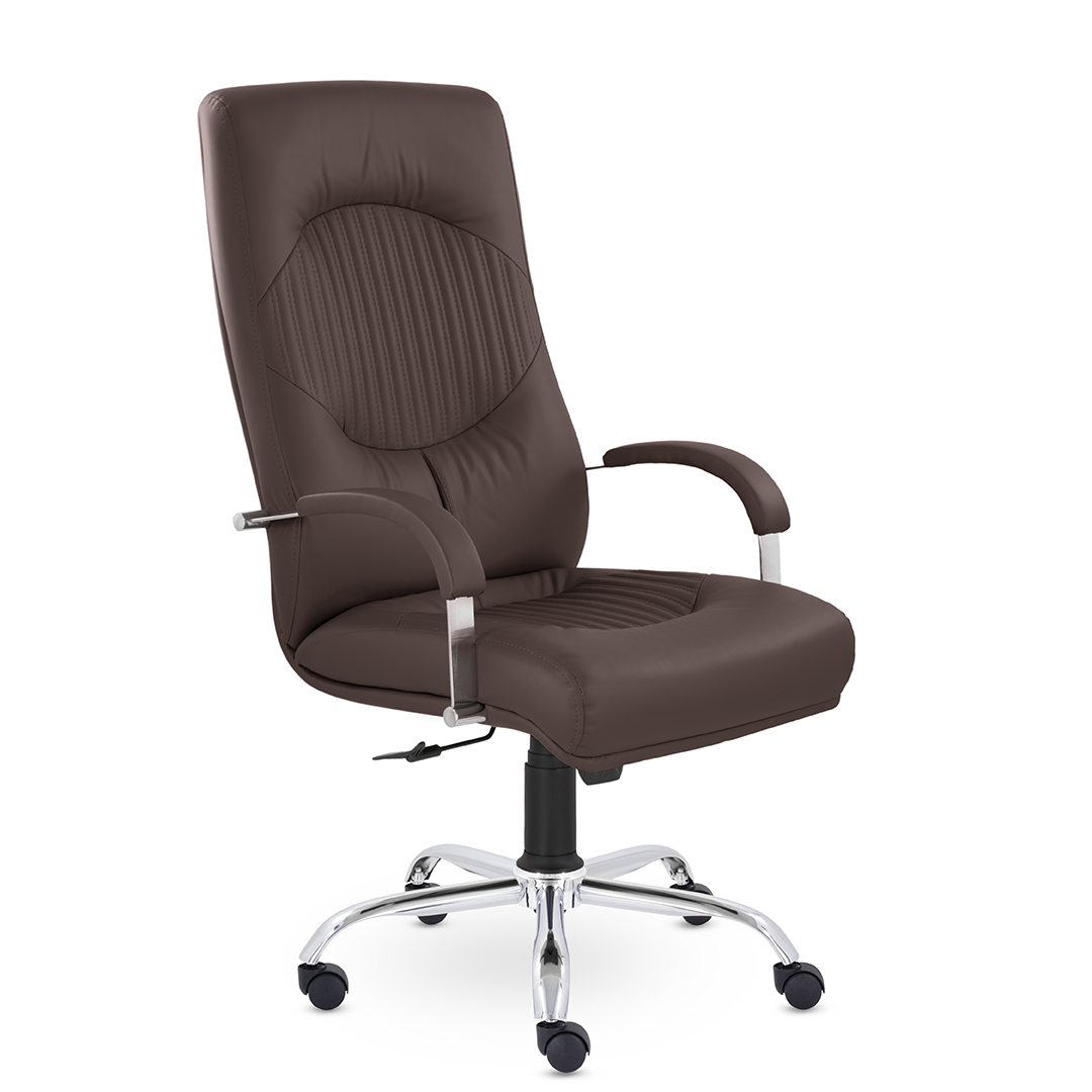 Кресло руководителя имеет две увеличенные подушки на спинке и сидении для поддержки спины и головы, которые разделяются декоративными вставками. Мягкие накладки на подлокотниках обеспечат комфортное положение рук. Максимальная нагрузка 120 кг.