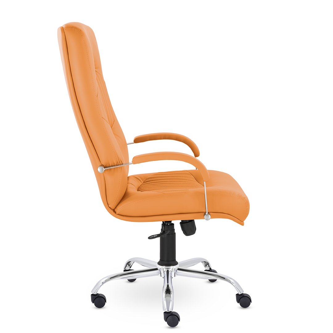 Кресло руководителя имеет две увеличенные подушки на спинке и сидении для поддержки спины и головы, которые разделяются декоративными вставками. Мягкие накладки на подлокотниках обеспечат комфортное положение рук. Максимальная нагрузка 120 кг.