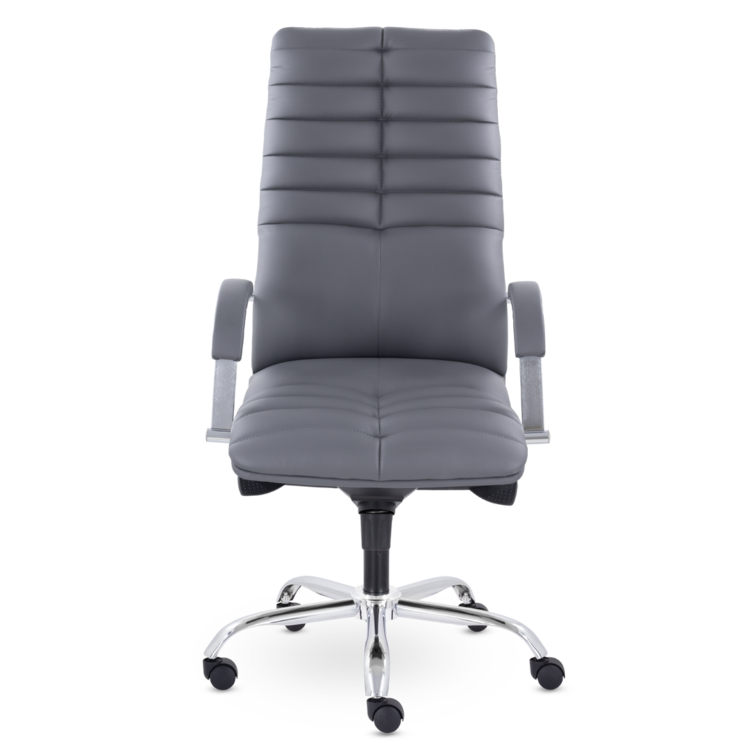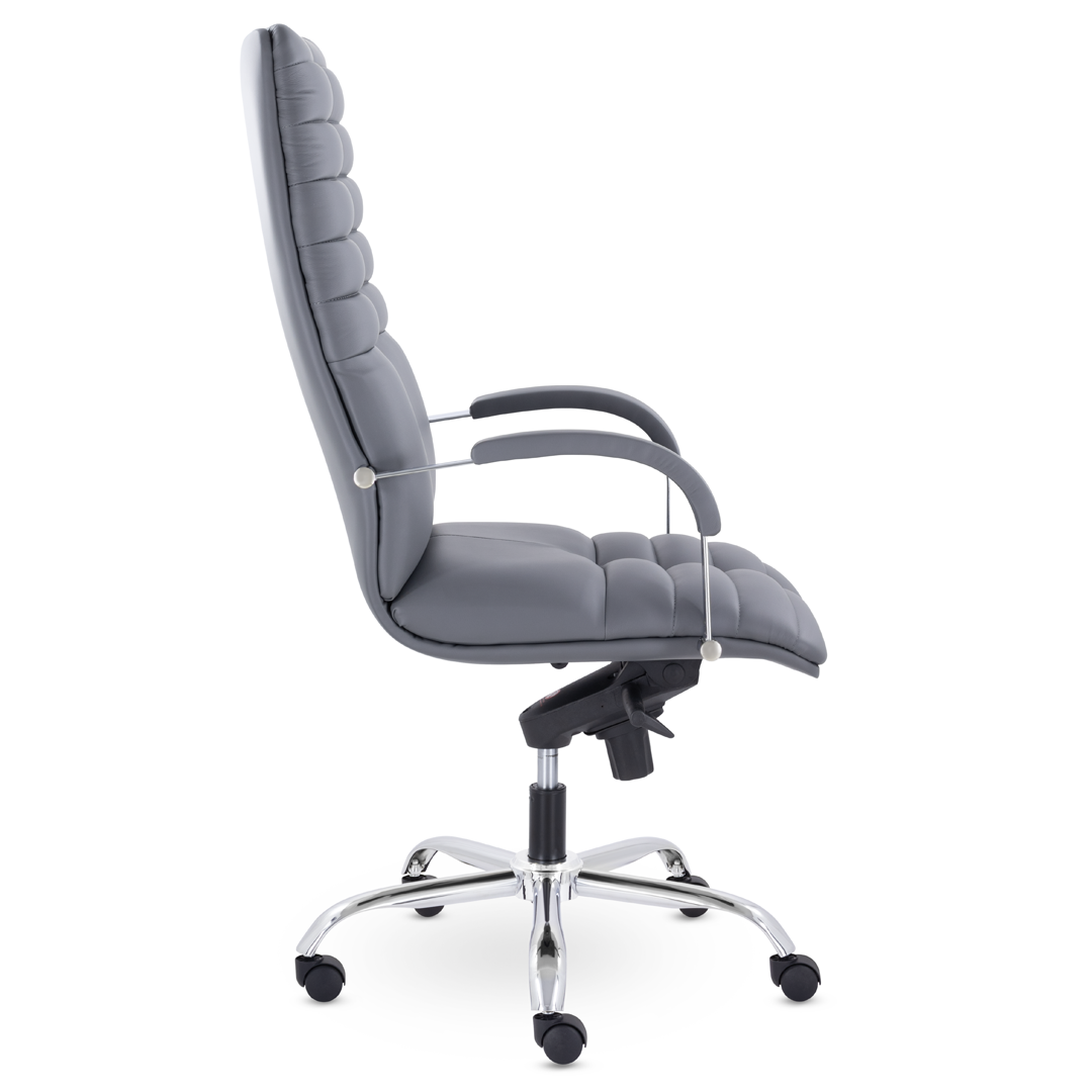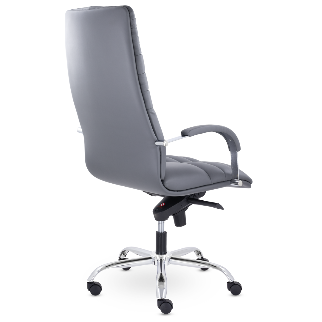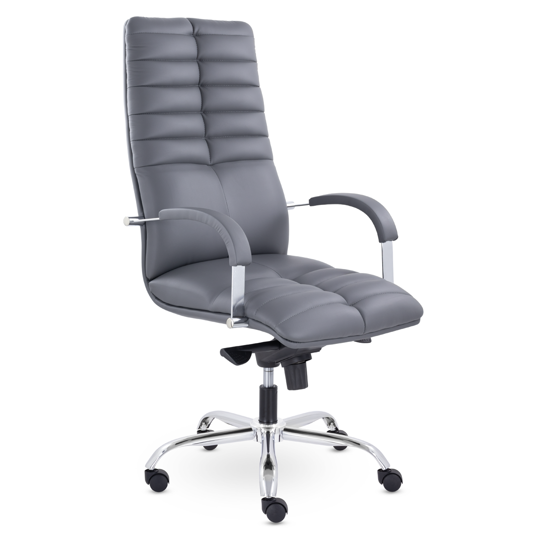 Современное кресло руководителя имеет вертикальную и горизонтальную прострочки, делящие спинку и сидение на небольшие прямоугольники. Тем самым создается интересный дизайн и кресло становится еще мягче. Подлокотники с мягкими накладками и крестовина выполнены из хрома. Механизм мультиблок. Максимальная нагрузка 120 кг.